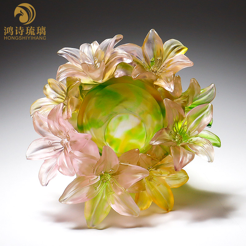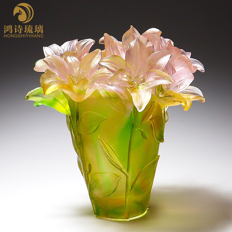琉璃艺术品百合花花瓶摆件客厅插花玄关餐L桌轻奢装饰品搬新家礼