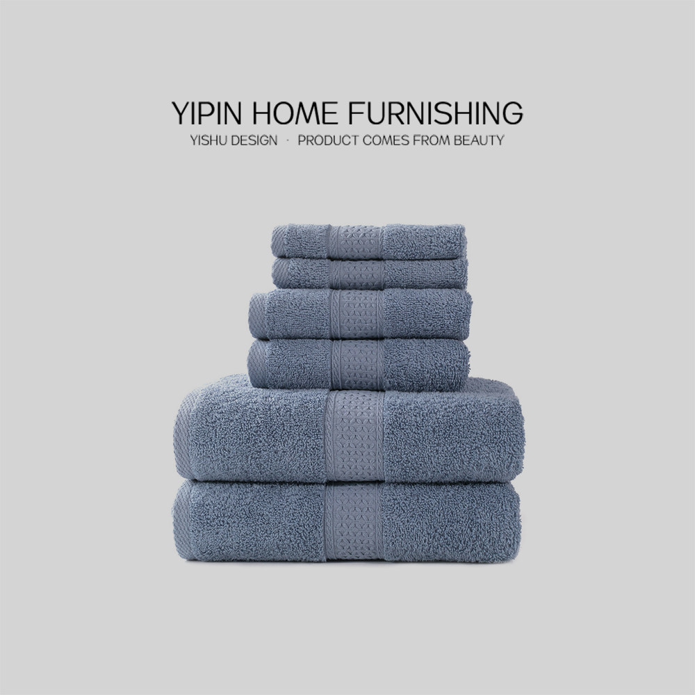样板房衣帽间卫浴纯棉浴巾别墅酒店加厚吸水纯色蓝色缎档毛巾组合