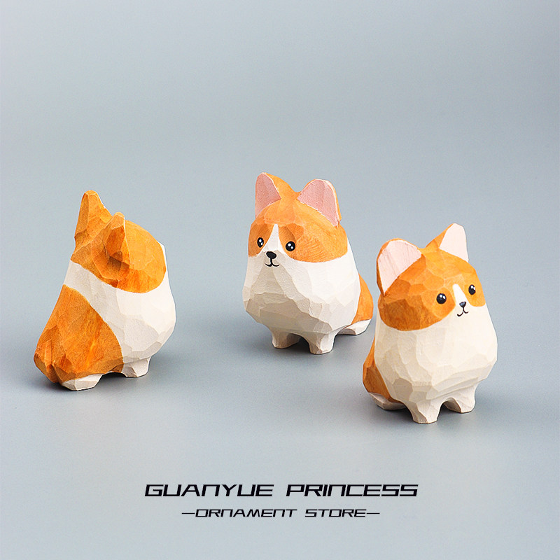 公主小柯基手工木雕小狗摆件桌面车载治愈系可爱生日礼物新年装饰