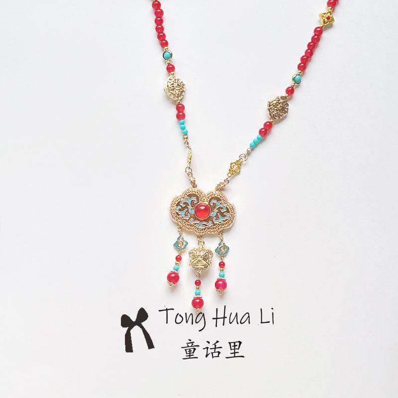「岁华」国风红色串珠平安锁璎珞项链新中式古风汉服马面裙配饰