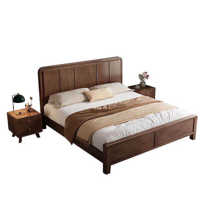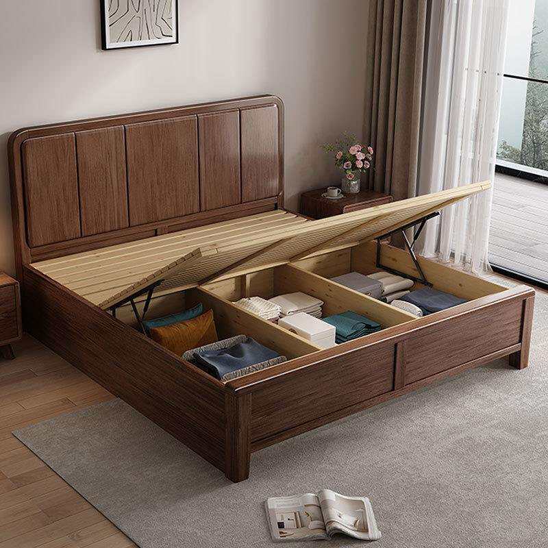 胡桃木家用实木床储物高箱现代简约大床带抽屉的主卧一米八双人床