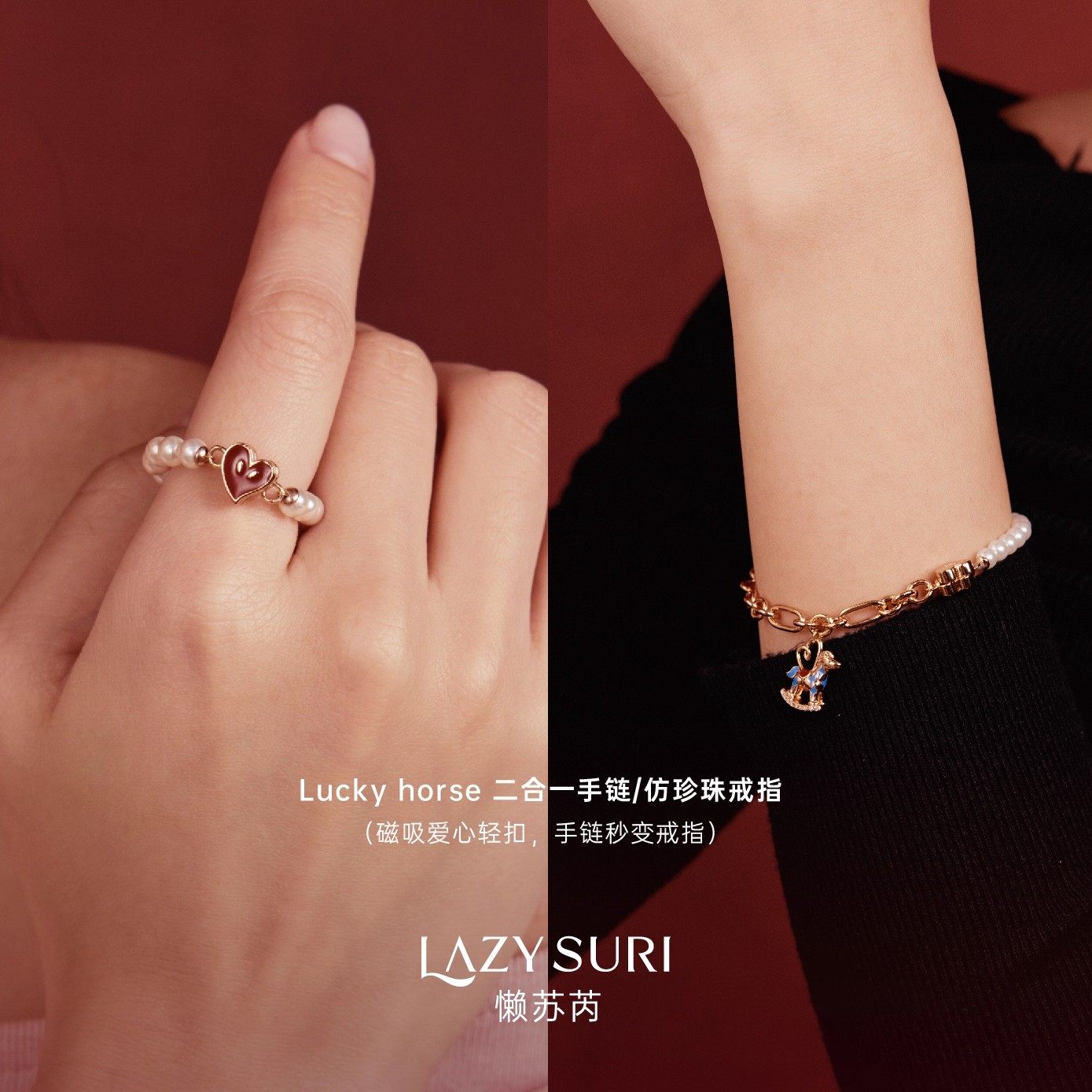LAZYSURI星运福马二合一磁吸手链/戒指女款珍珠本命新年马年红色