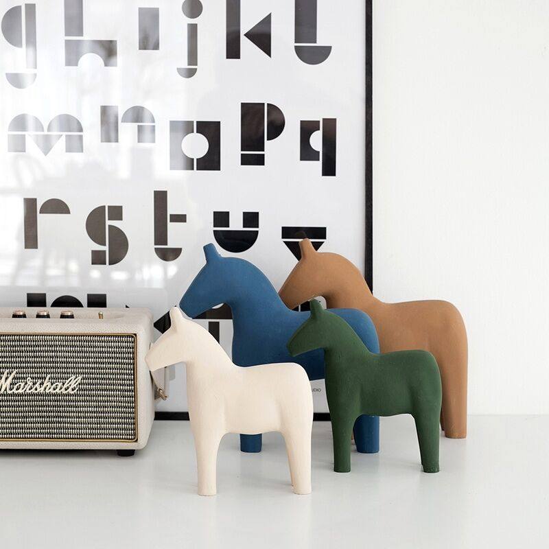北欧原木彩绘 欧式瑞典达拉木马摆件 婚庆红马套装家居客厅电视