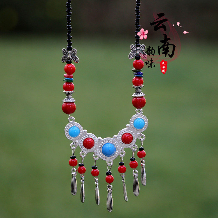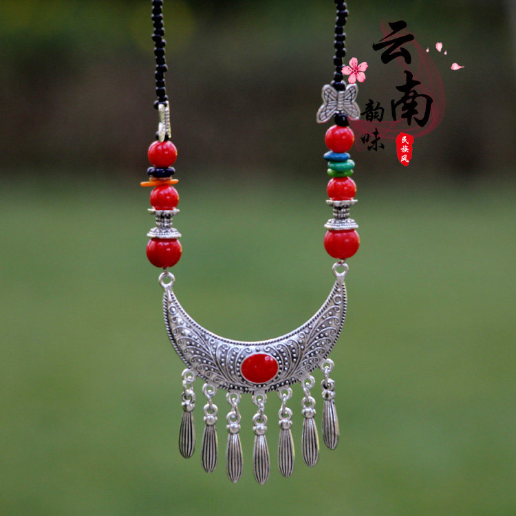云南民族风项链额饰配饰古风眉心坠汉服发饰红色异域风情少数民族