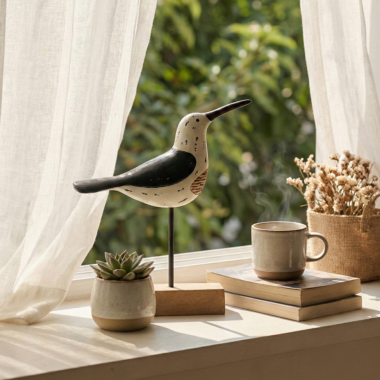 地中海风格木质剥漆长尾鸟摆件创意家居装饰品客厅桌面小鸟工艺品