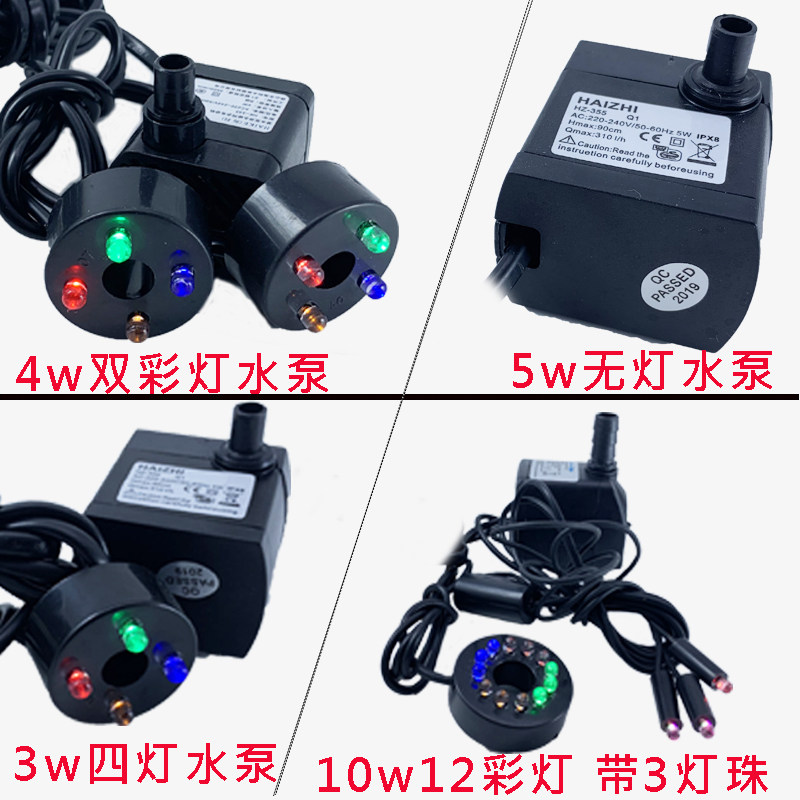 假山抽水泵带灯循环流上水族家用鱼缸自吸迷你盆景小型过滤潜水泵