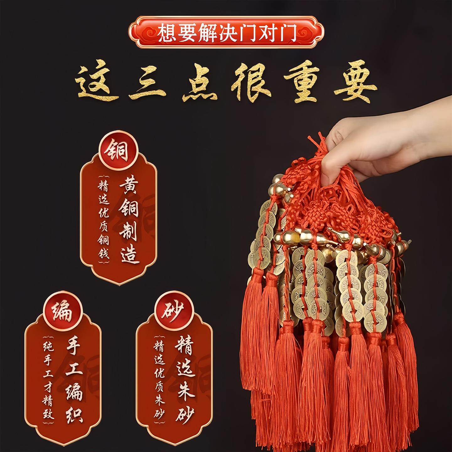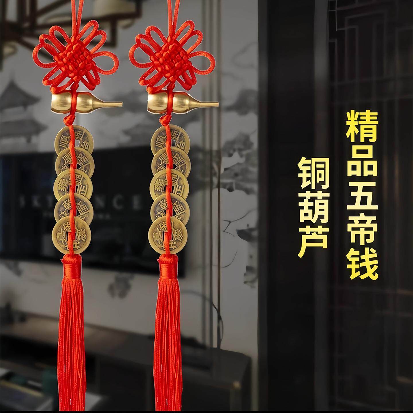 精品黄铜葫芦五帝钱红色手工编织吉祥结居家门挂件吉祥中国结挂件