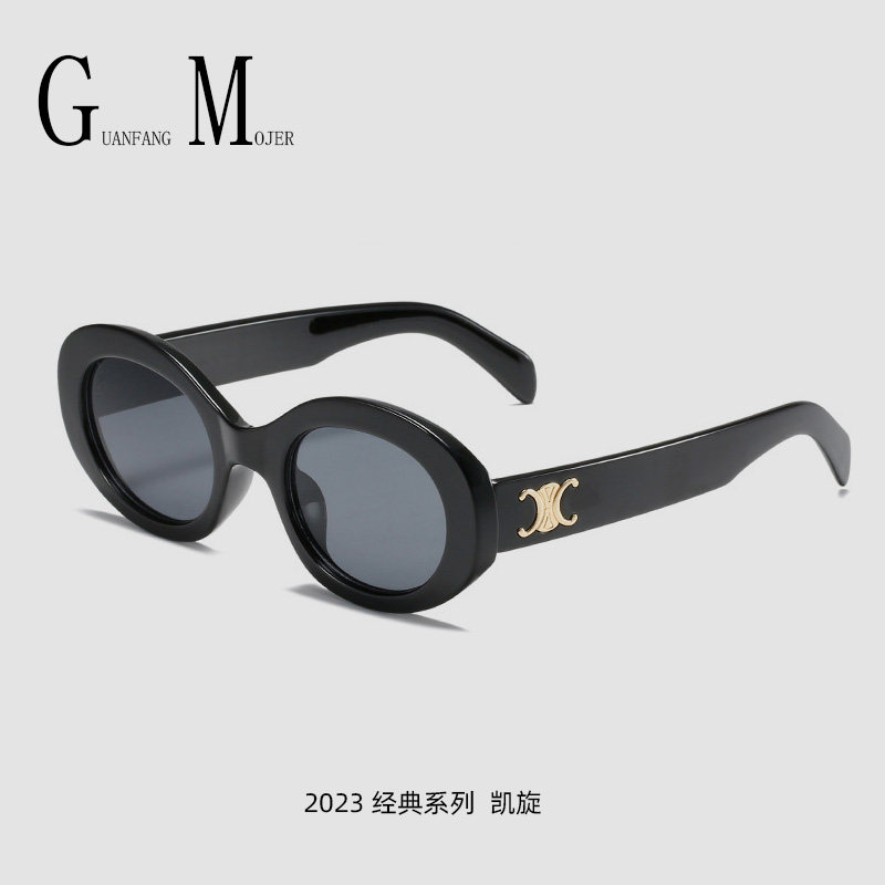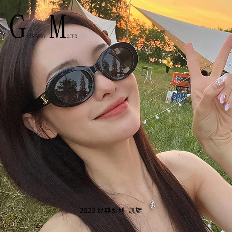 凯旋门复古猫眼白色墨镜女款高级感2023新款大脸太阳眼镜防紫外线