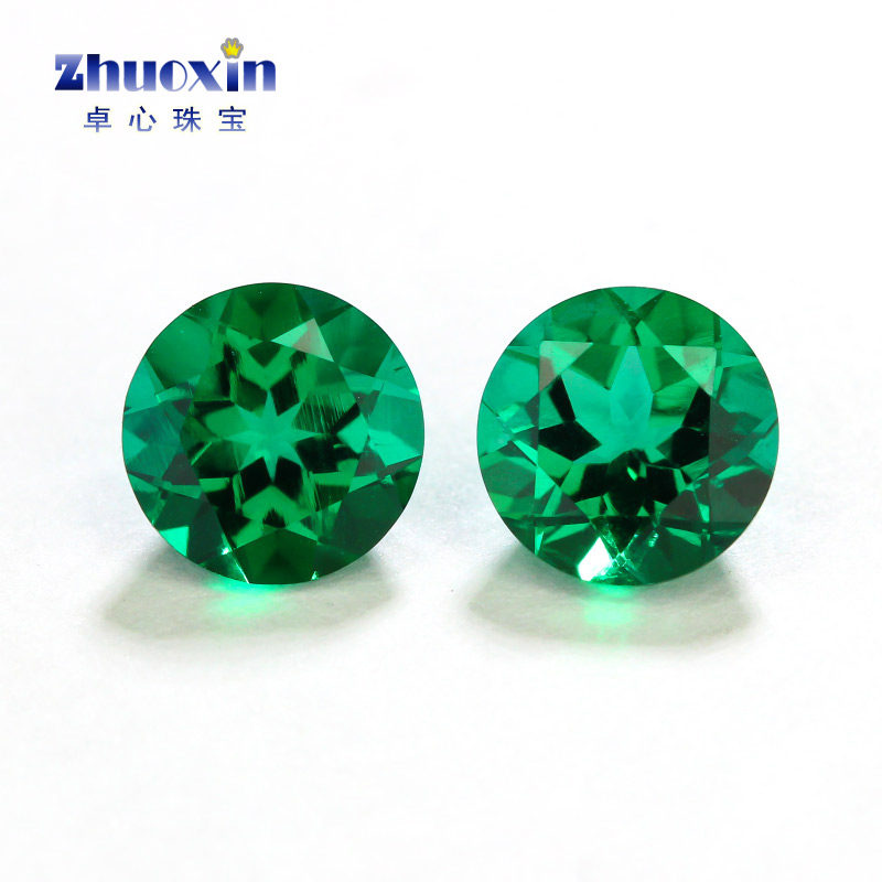 圆形赞比亚祖母绿裸石合成彩宝 水热法实验室培育首饰镶嵌用戒面
