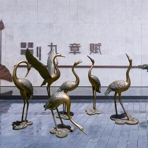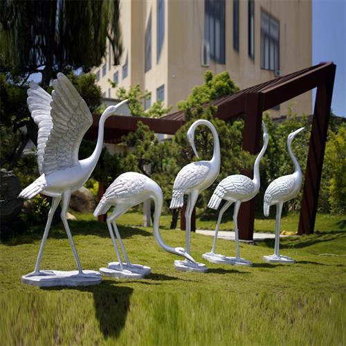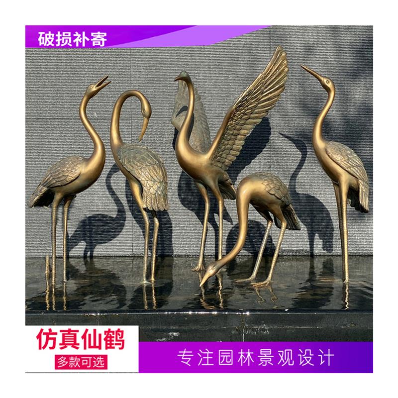 仿铜抽象仙鹤摆件户外玻璃钢园林景观动物装饰庭院水池丹顶鹤雕塑