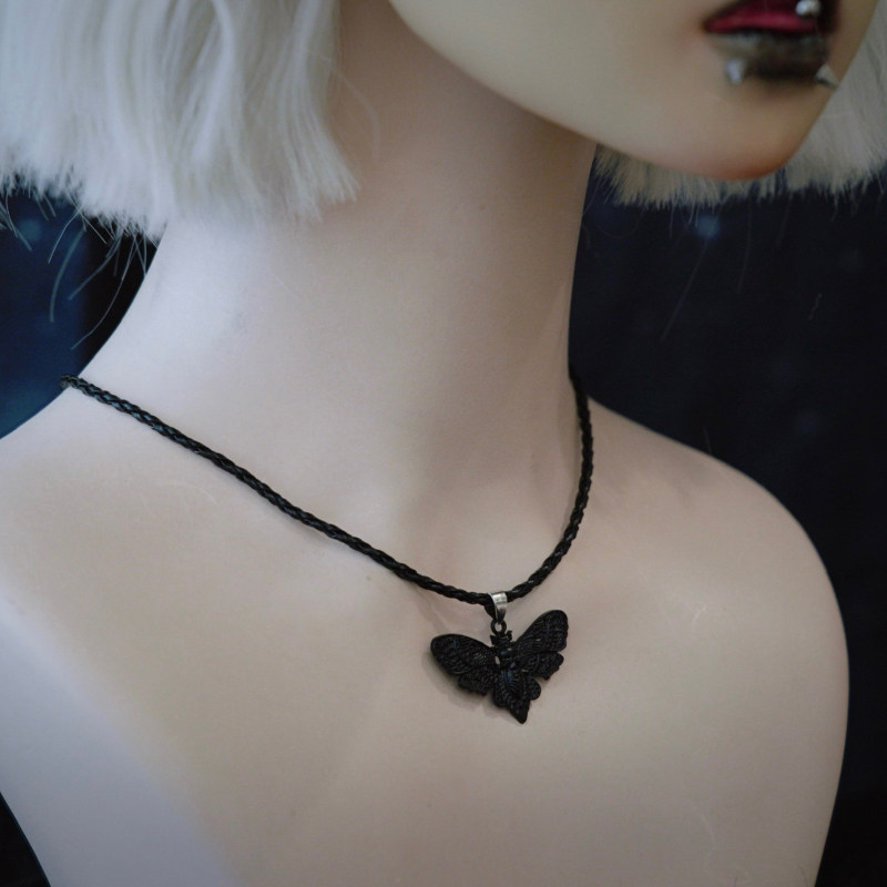 怪糖饰物集原创手工黑色飞蛾编织锁骨链项链暗黑亚文化黑色