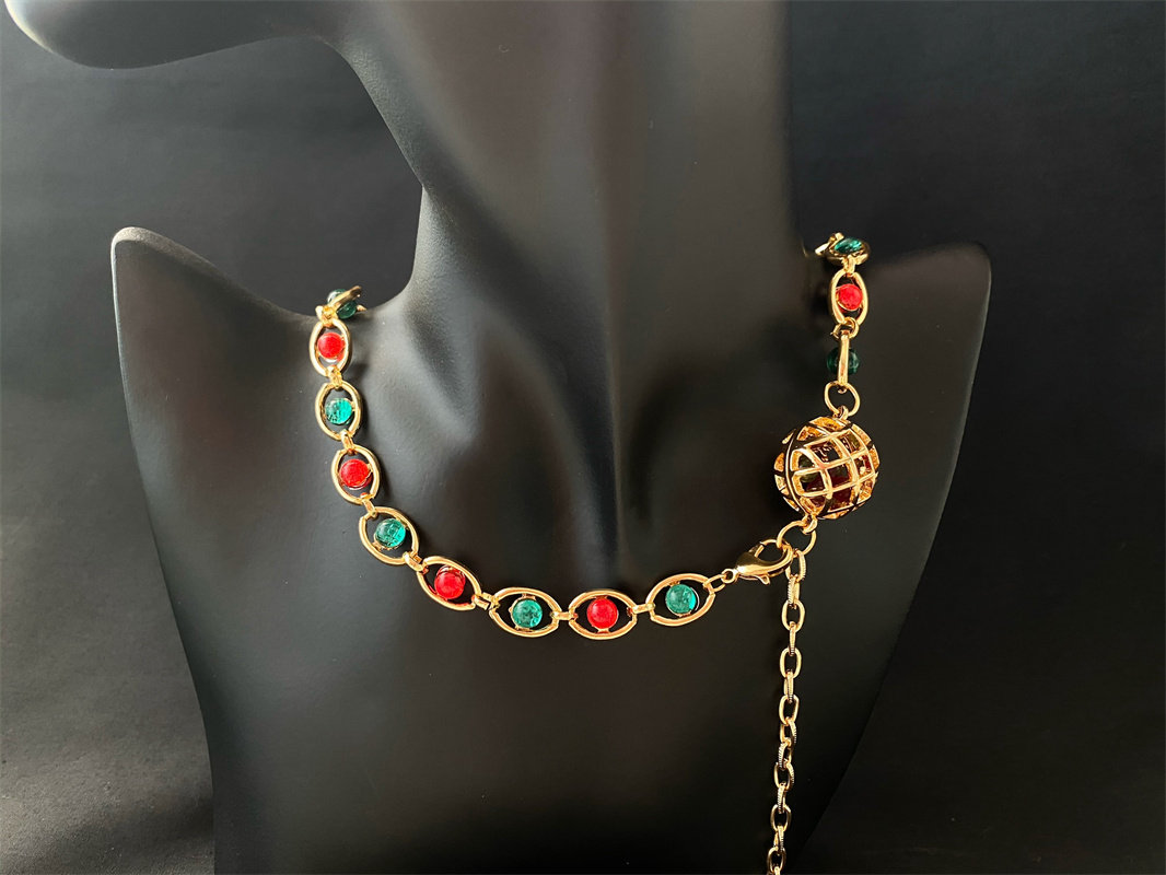 予 233复古Vintage欧美巴洛克镀真金保色琉璃镂空金球手链项链包
