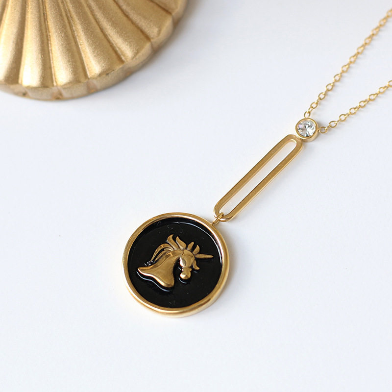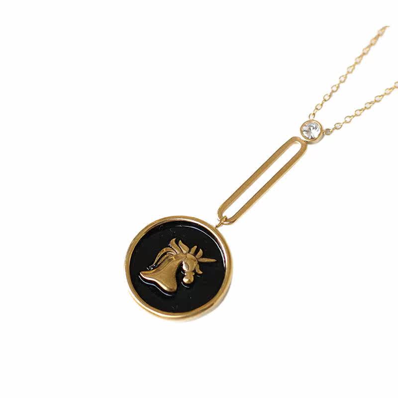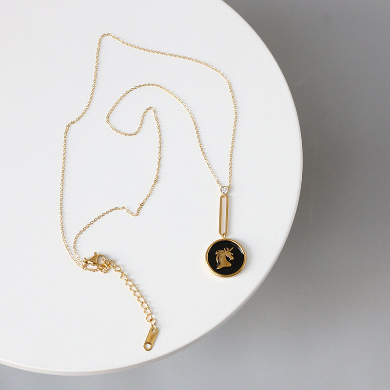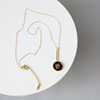 独角兽欧美百搭滴胶黑色圆盘裸钻项链毛衣链秋冬新款 钛钢镀18K金