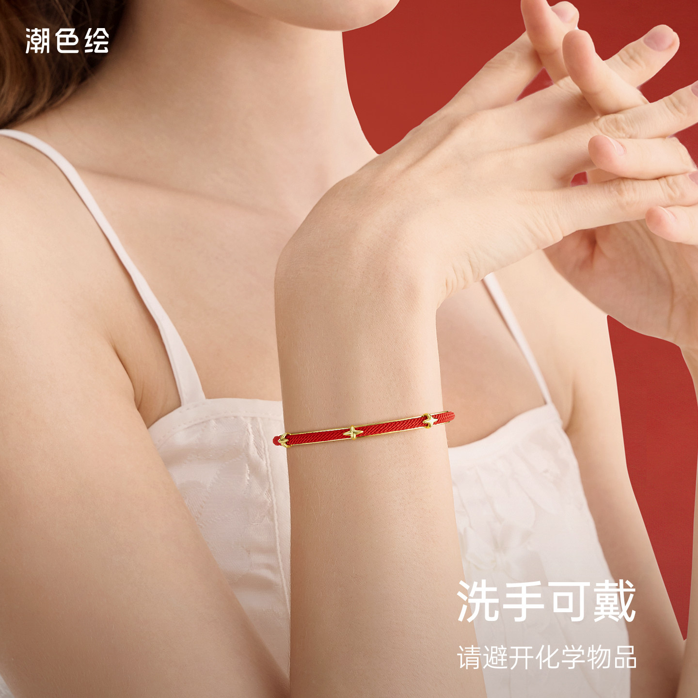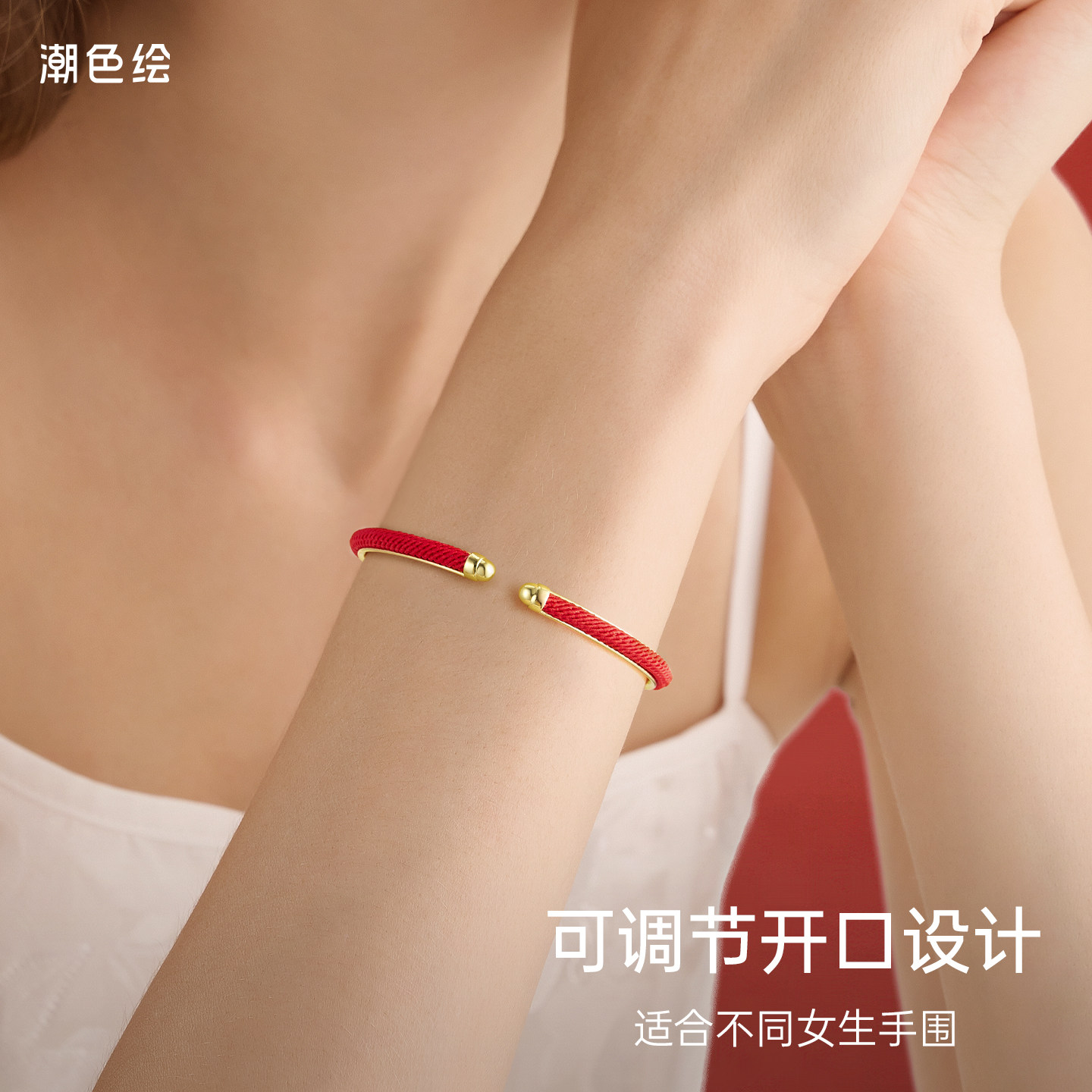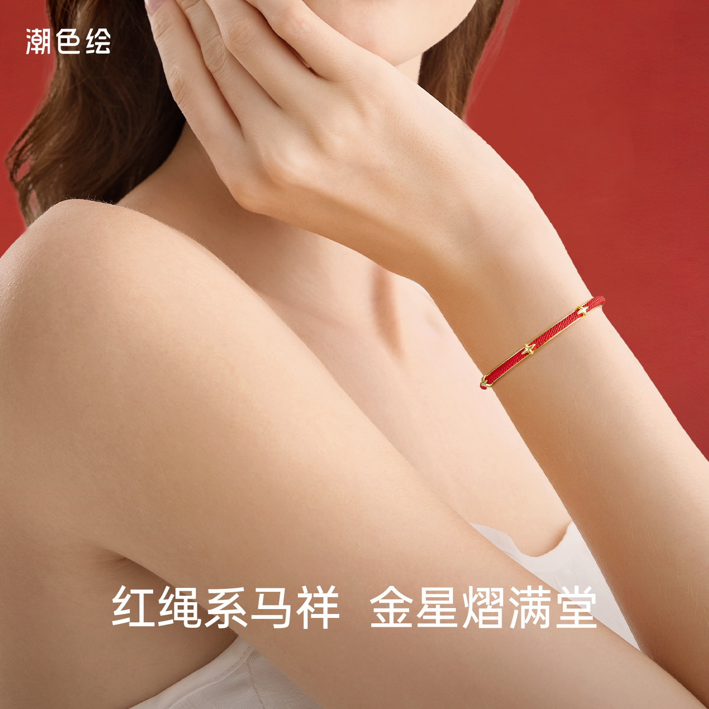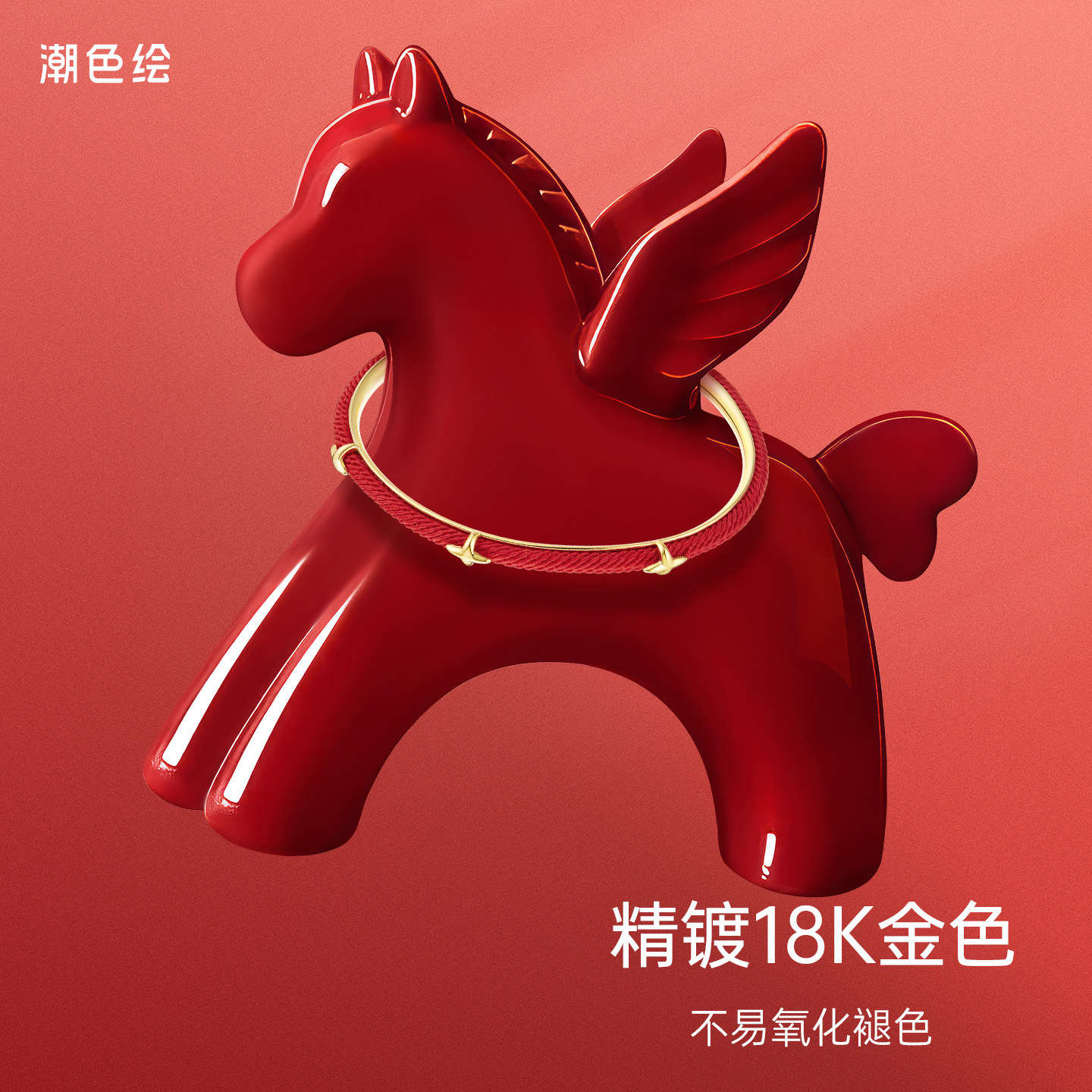 潮色绘马年本命年红绳手镯女18K金色2026生肖马红色元旦跨年礼物