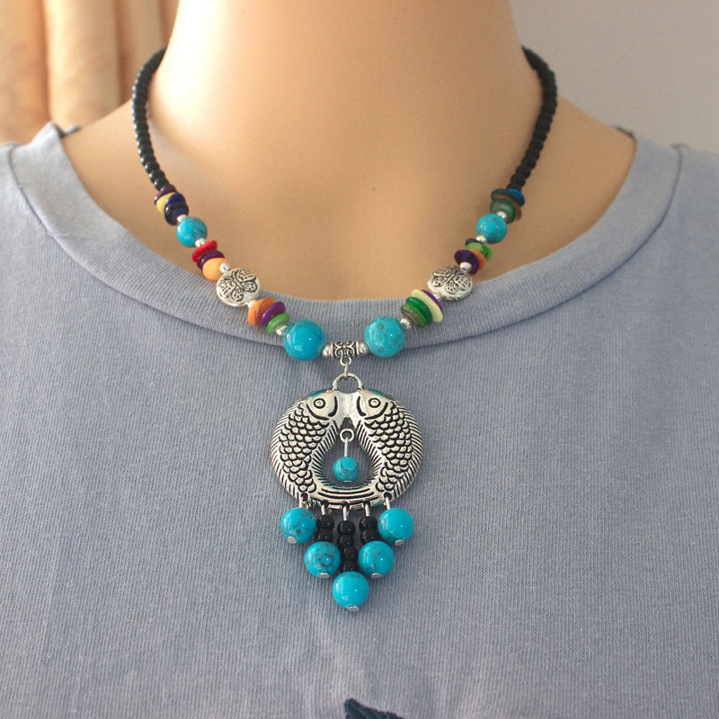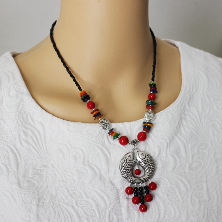 少数民族风短项链云南丽江复古锁骨链红色异域风情配饰品旅游女款