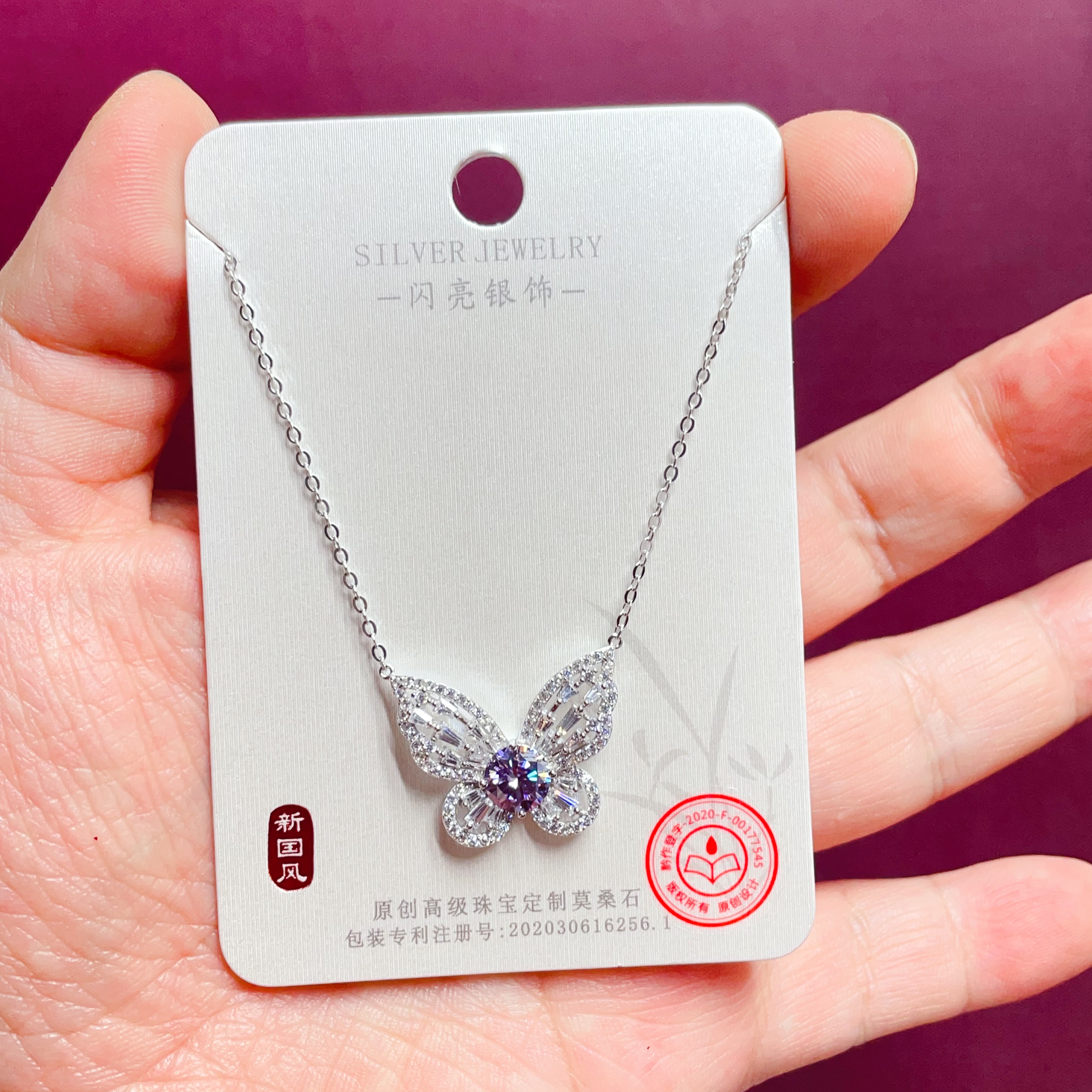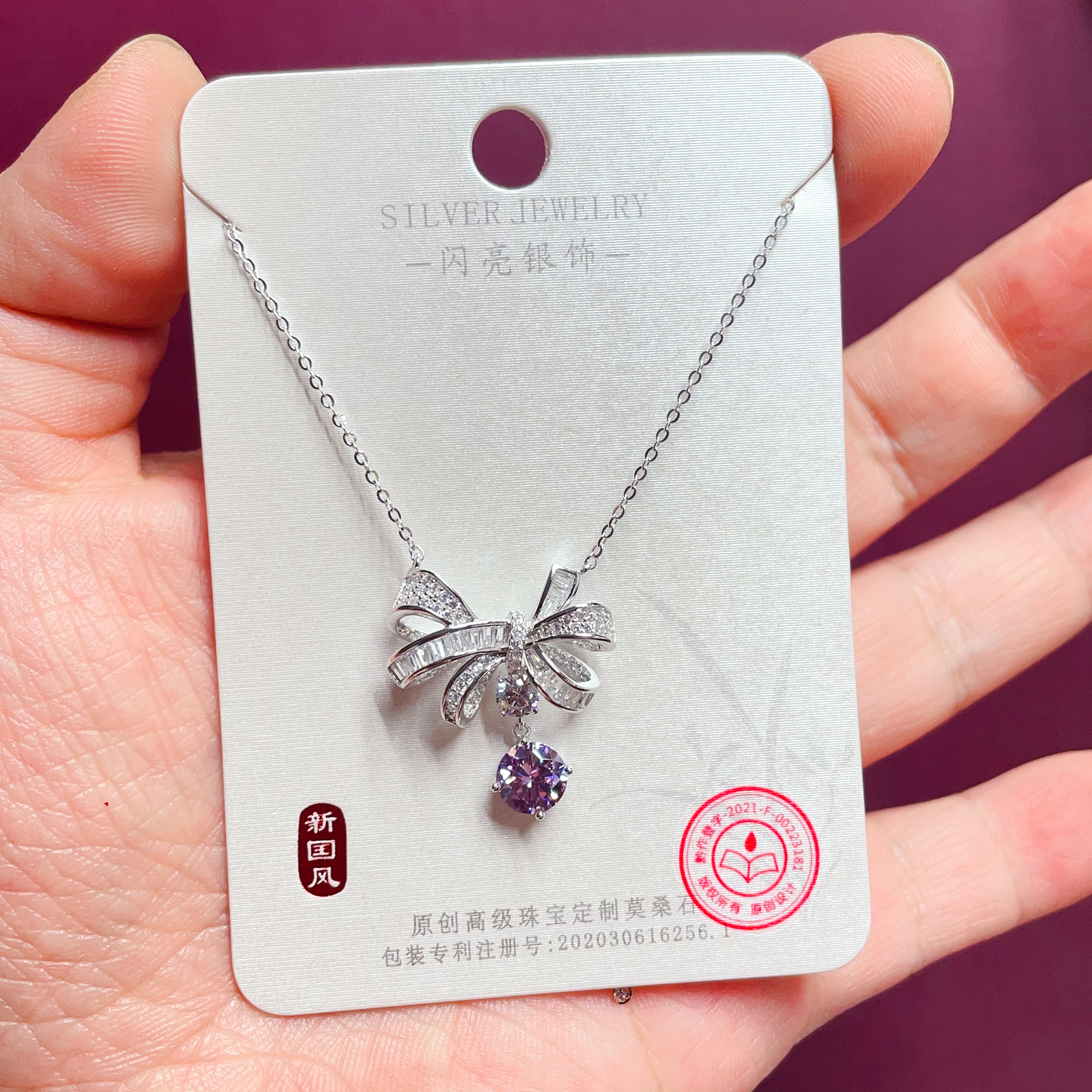 闪亮银饰通体S925纯银紫色莫桑钻时尚锁骨项链女百搭气质潮 112#