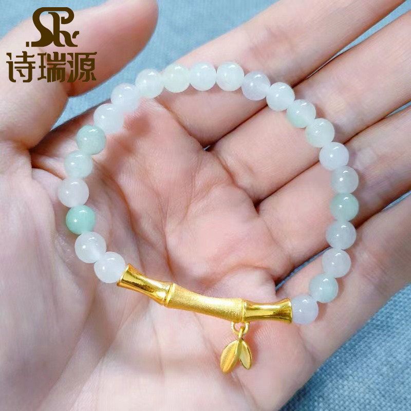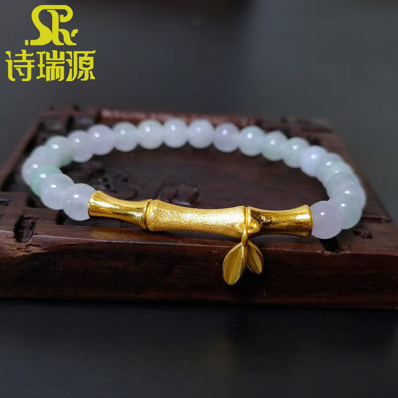 诗瑞源3D硬金黄金竹节弯管路路通999足金节节高竹叶手串手链女款