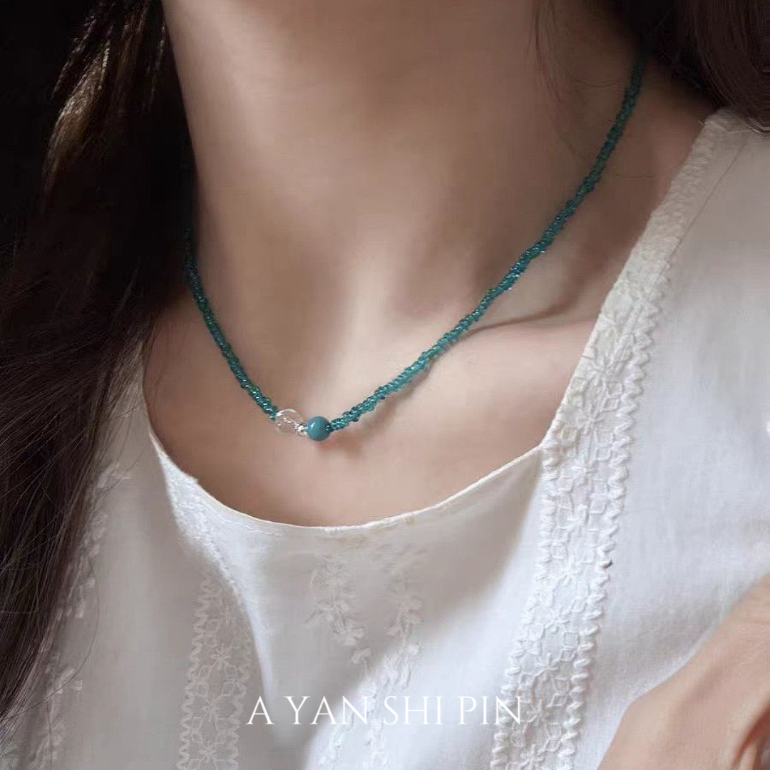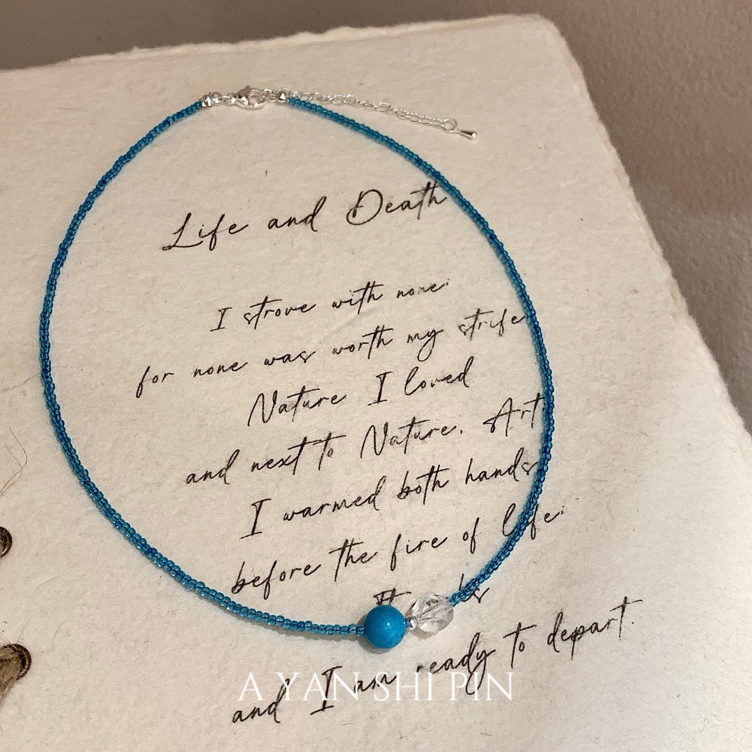 夏日清新小众设计感蓝色串珠项链女轻奢高级感锁骨链颈链