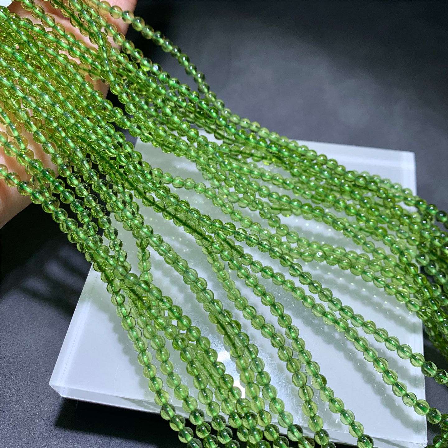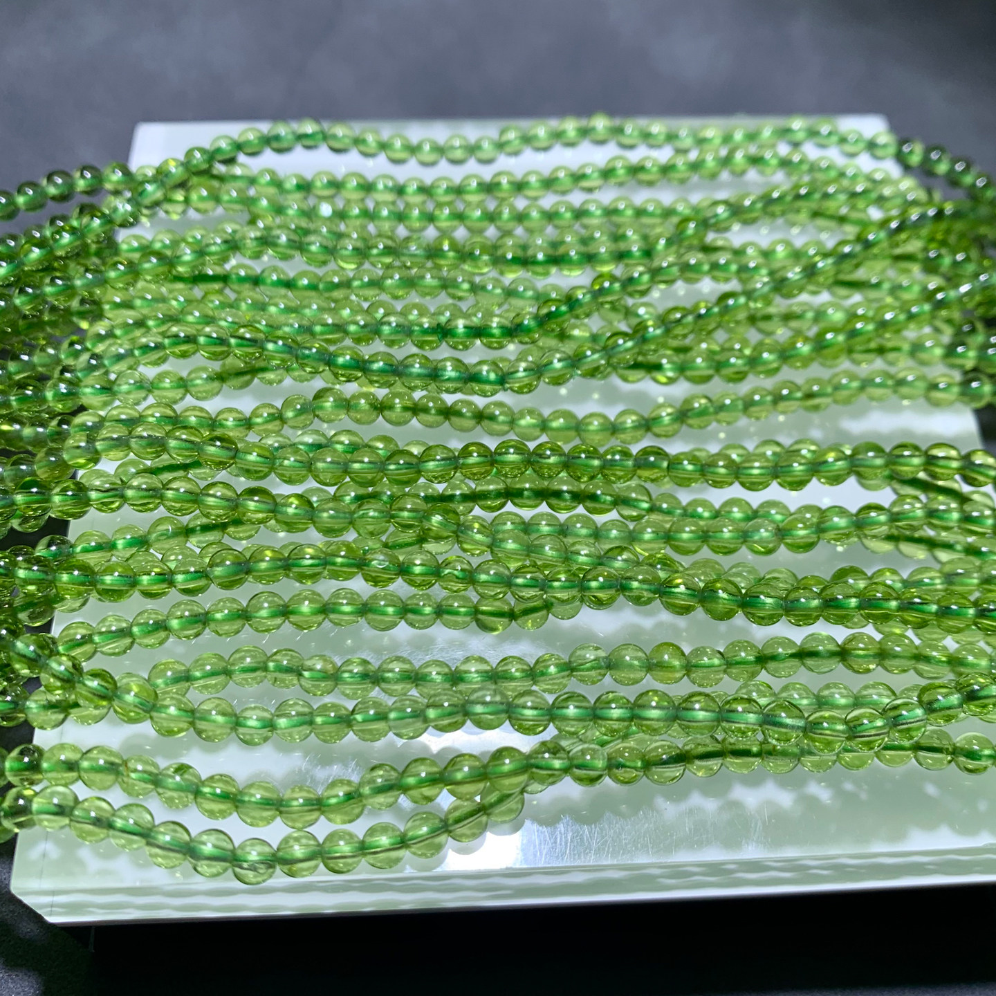 天然翠绿色橄榄石三圈手串通透水晶手链饰品情侣款送礼物男女配饰