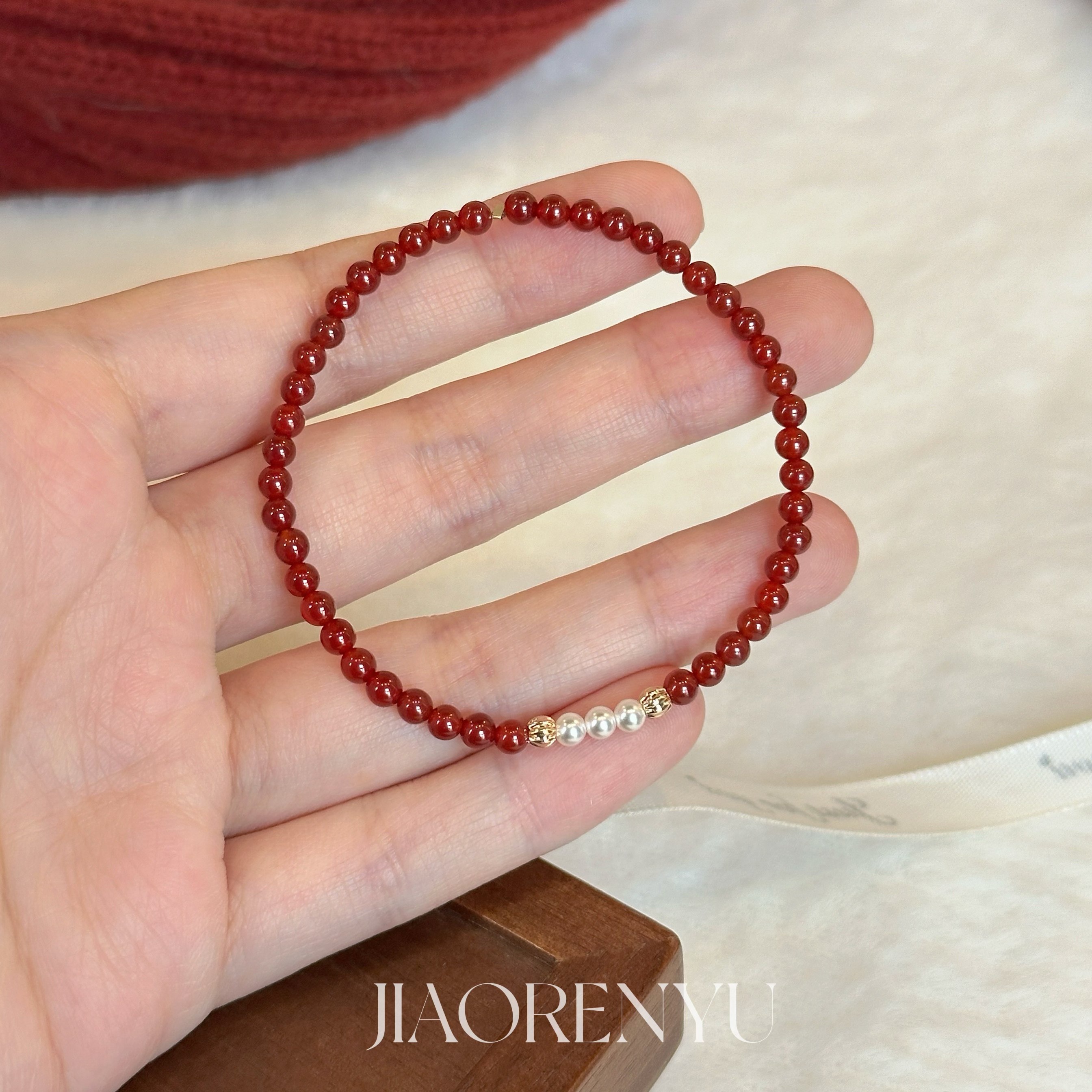 鲛人语/绯红流珠 红玛瑙施家高亮珍珠秋冬手链简约新年红色手串
