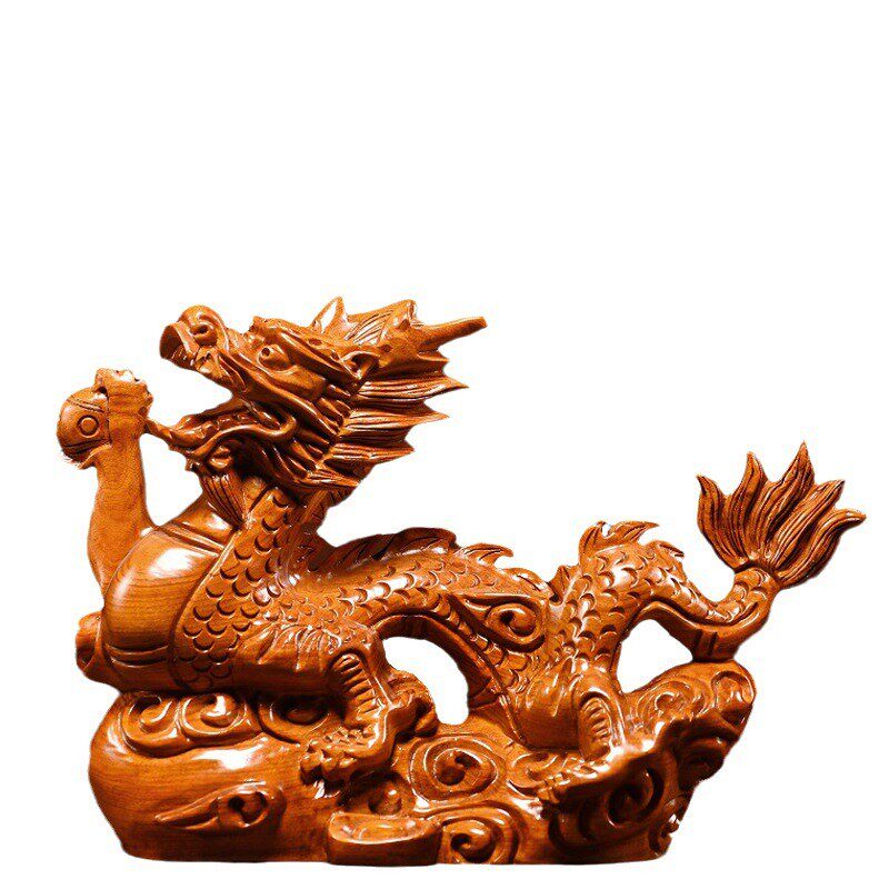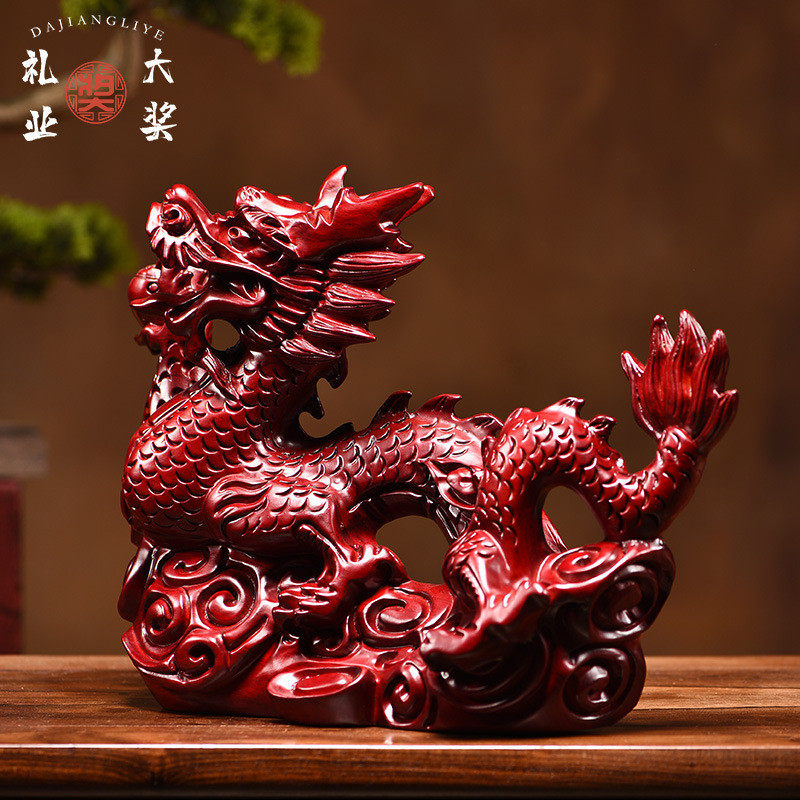 花梨实木龙摆件生肖装饰红色木雕刻龙家居办公龙红木工艺品送礼品