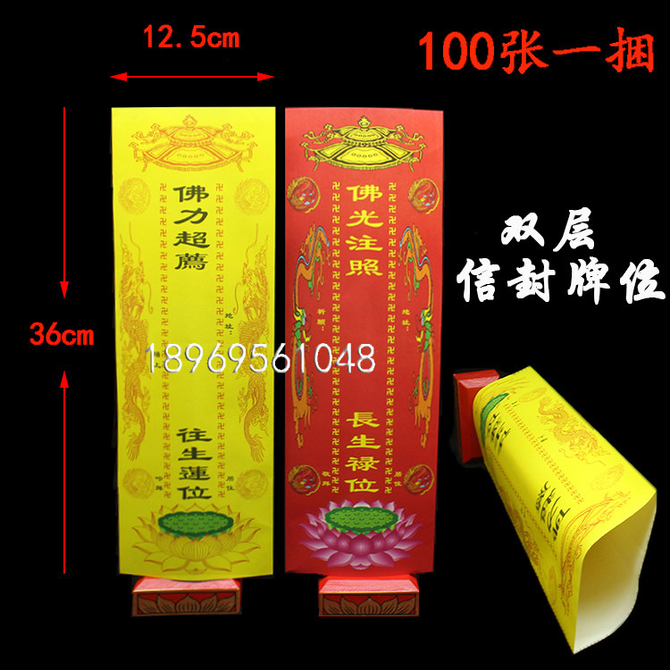 36*12.5cm双层信封款牌位纸烫金纸牌位宝盖流苏款双龙贴金牌