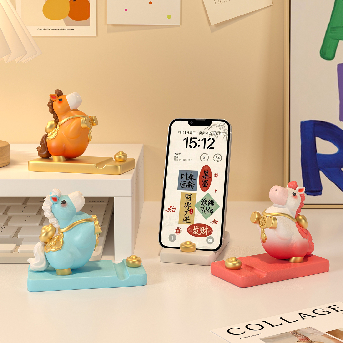 2026马年吉祥物生肖马摆件手机支架马上来财办公室工位桌面装饰品
