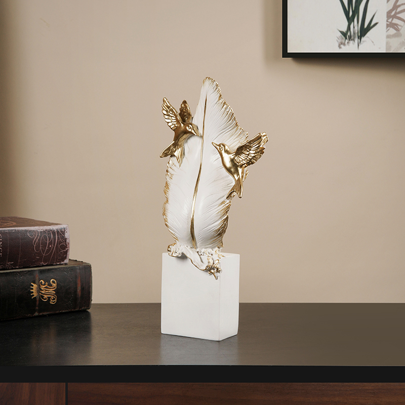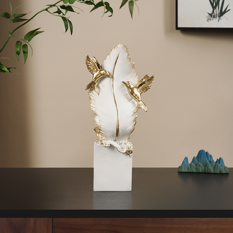 餐边高档装饰品玄关高端书柜羽毛摆件新居办公桌组合大气工艺品