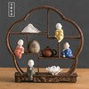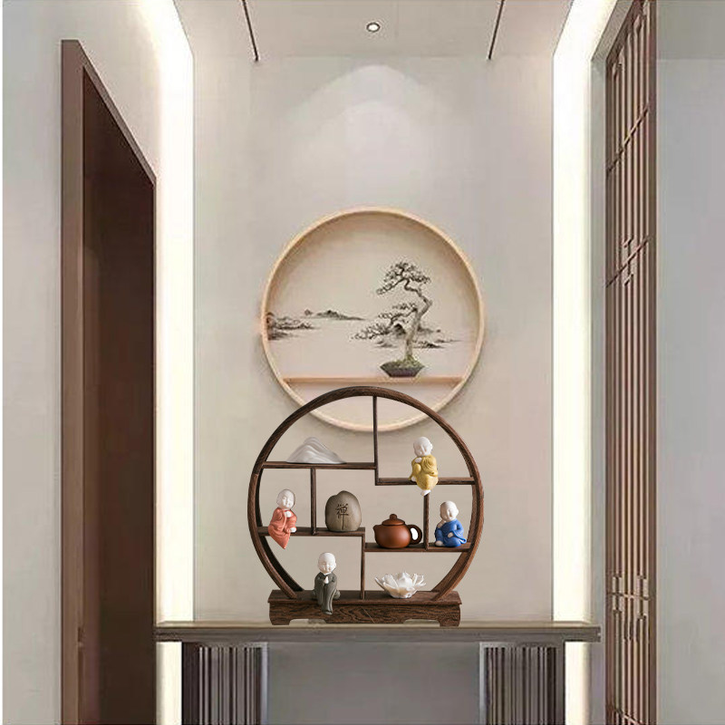博古架摆件实木新中式小型茶桌客厅玄关装饰办公室电视柜圆形书房