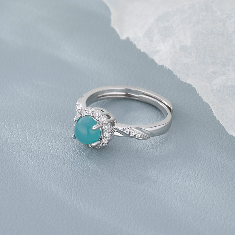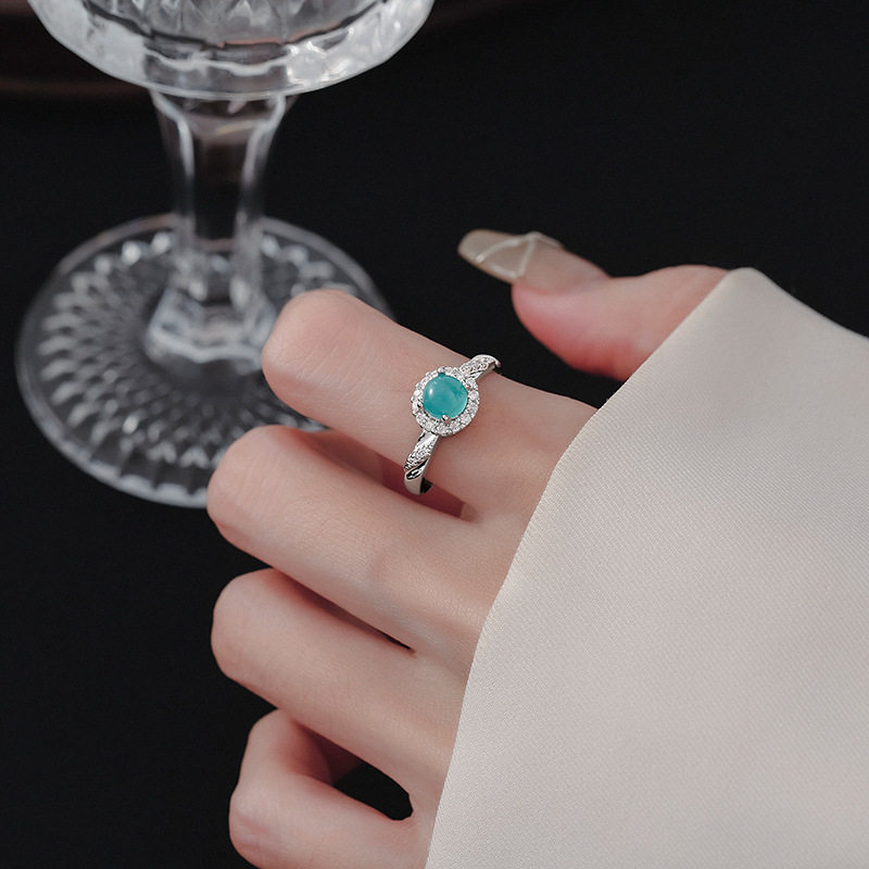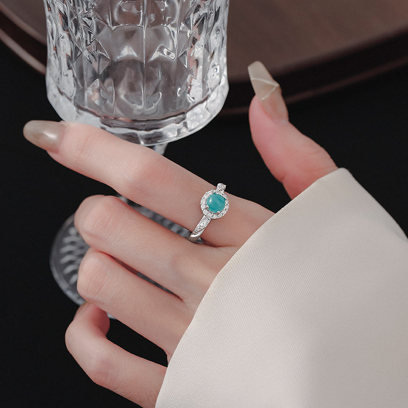 新款爆款新中式海洋蓝色锆石戒指女清冷感可调节显白百搭小众