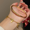 天然贝母H字母手链手镯女ins日韩冷淡风小众设计款钛钢不掉色手环
