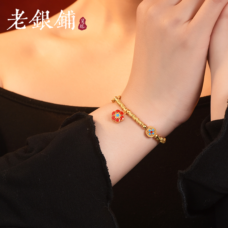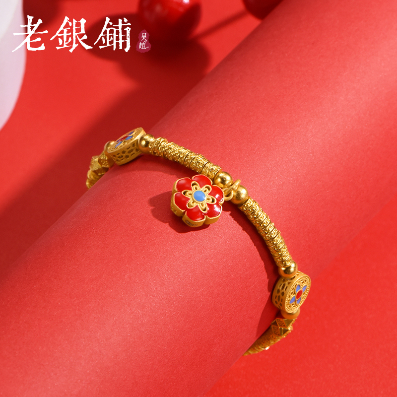 吴越老银铺S925花锦盘缠手链精致珐琅奢华古法爆款金色纯银手链