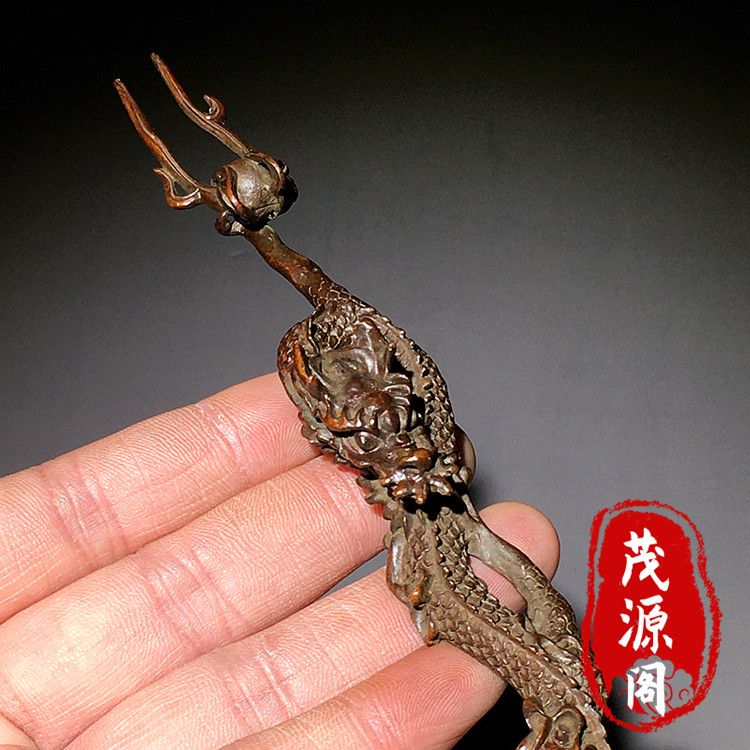 古玩老铜器十二生肖龙手工雕刻天子真龙茶壶提杆铜壶茶宠旧货摆件
