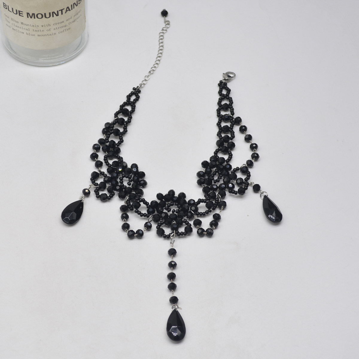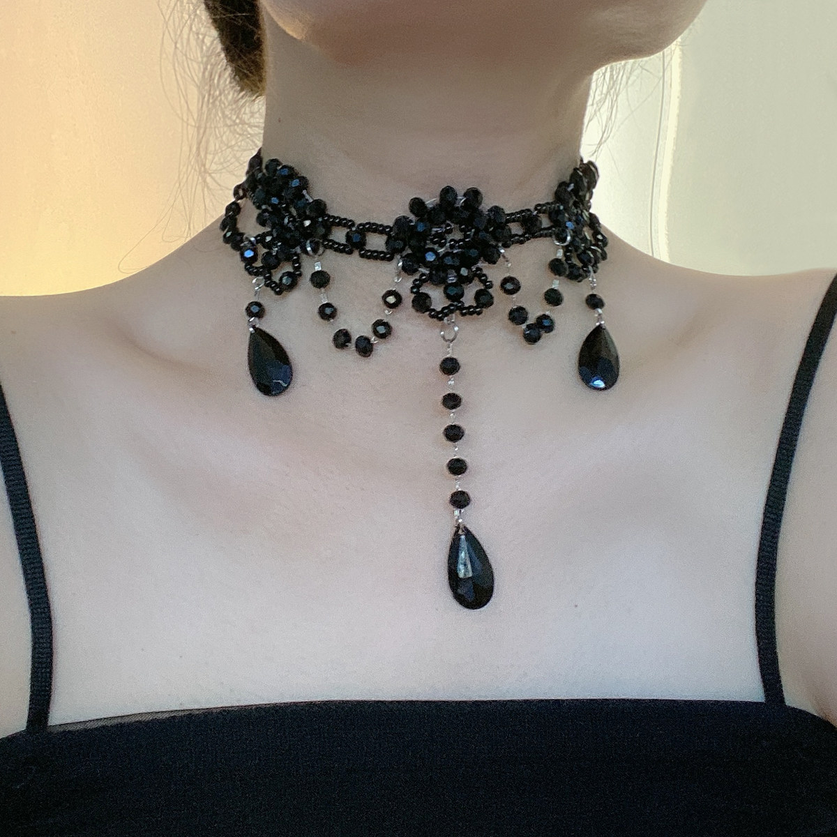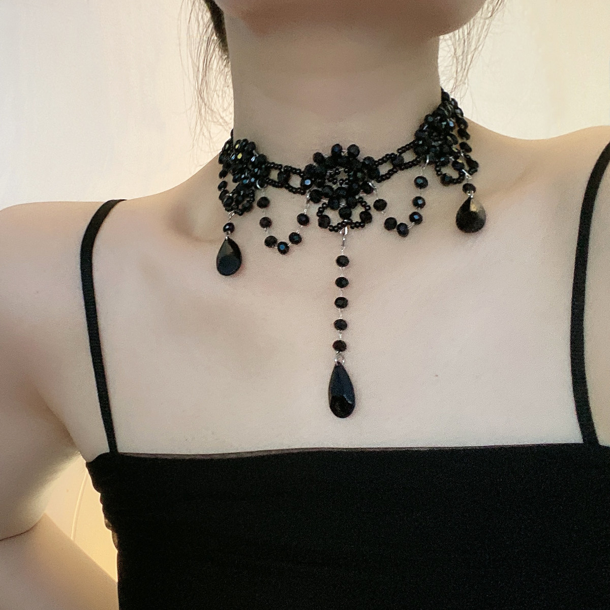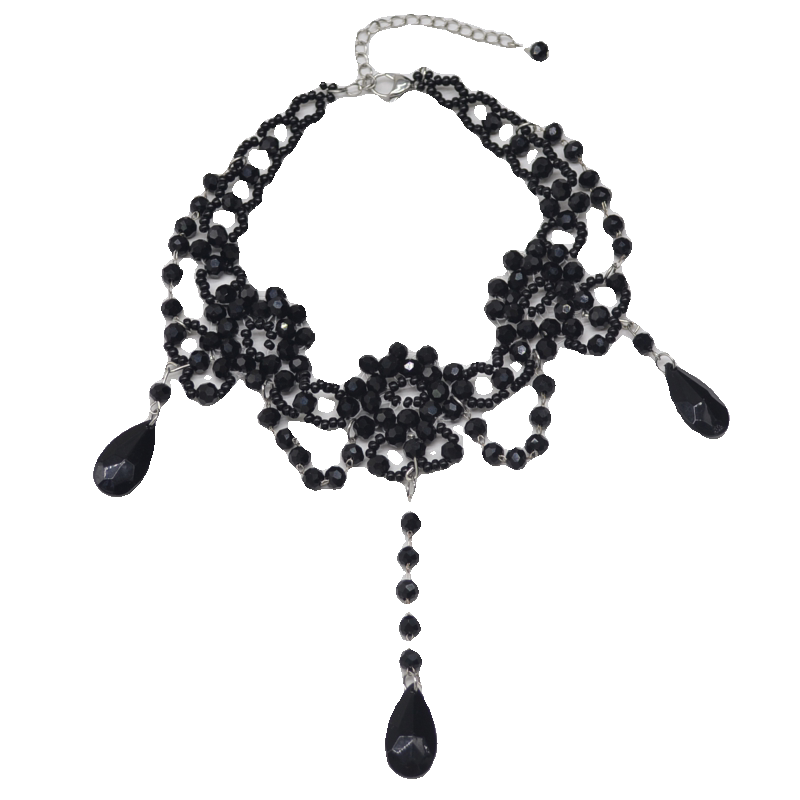 流苏串珠洛丽塔项链女超仙气质编织黑色水晶锁骨颈链复古choker