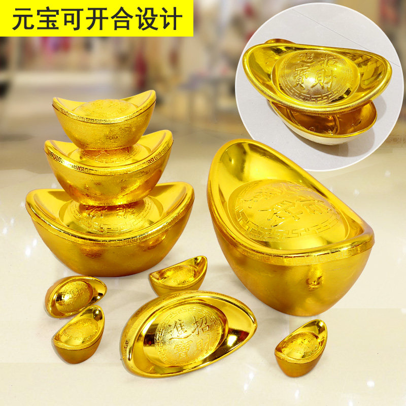 元旦新年装饰仿真金元宝摆件招财塑料空心大元宝道具春节场景布置