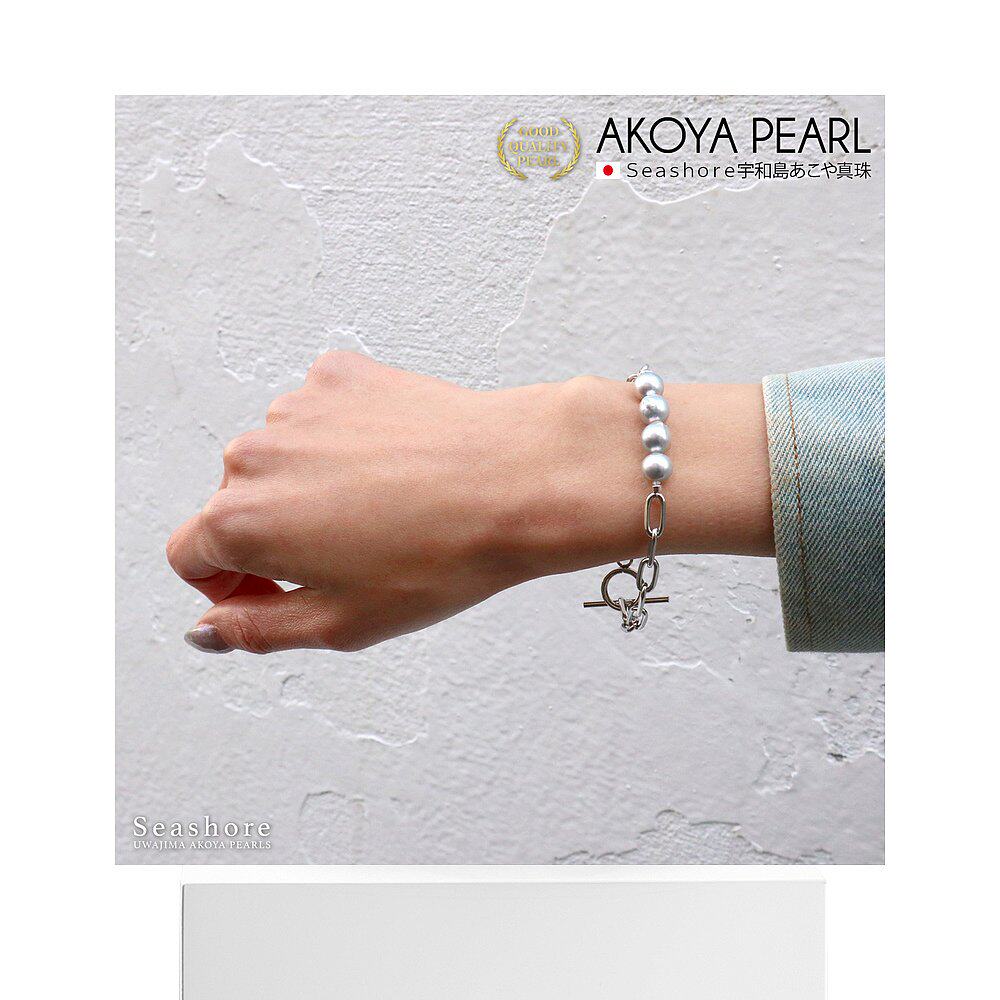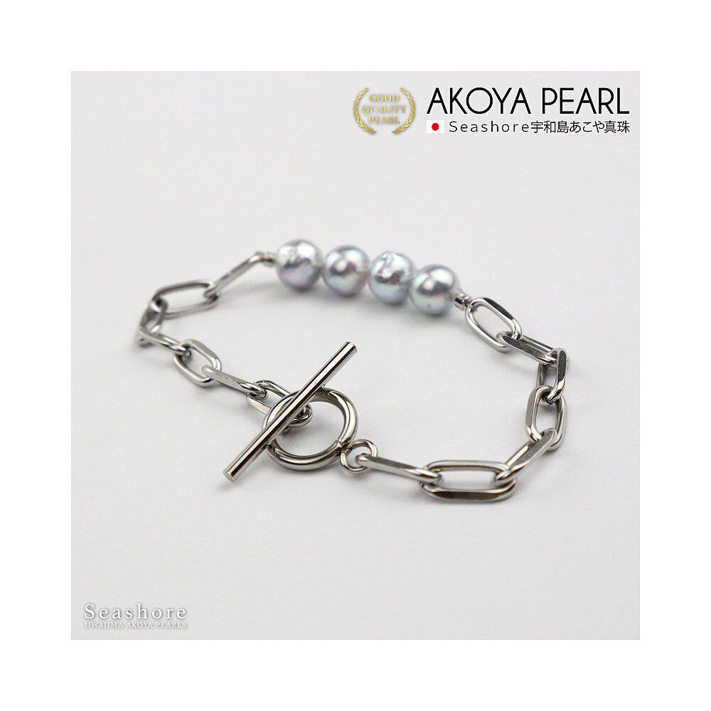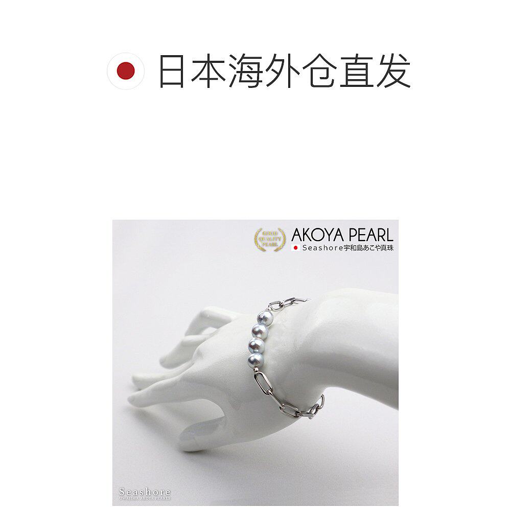 日本直邮Akoya 珍珠4 珠手链天然蓝灰色巴洛克风格带储物盒不锈钢