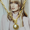 欧美金色圆牌女王头像巴洛克珍珠项链女轻奢小众高级感新款锁骨链