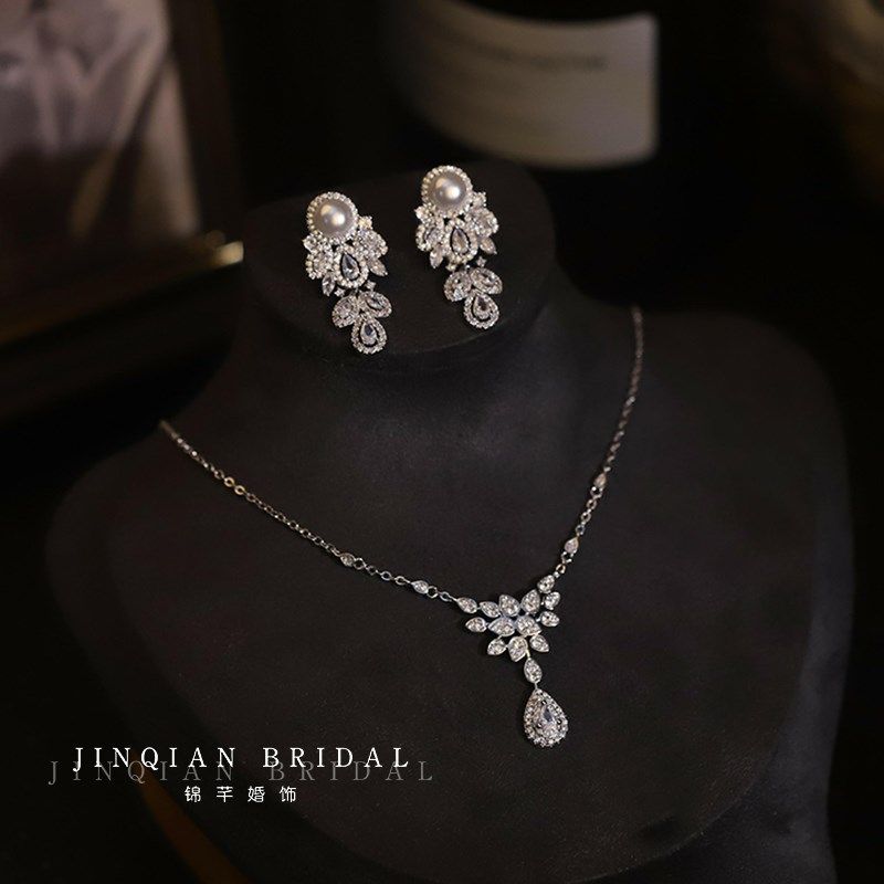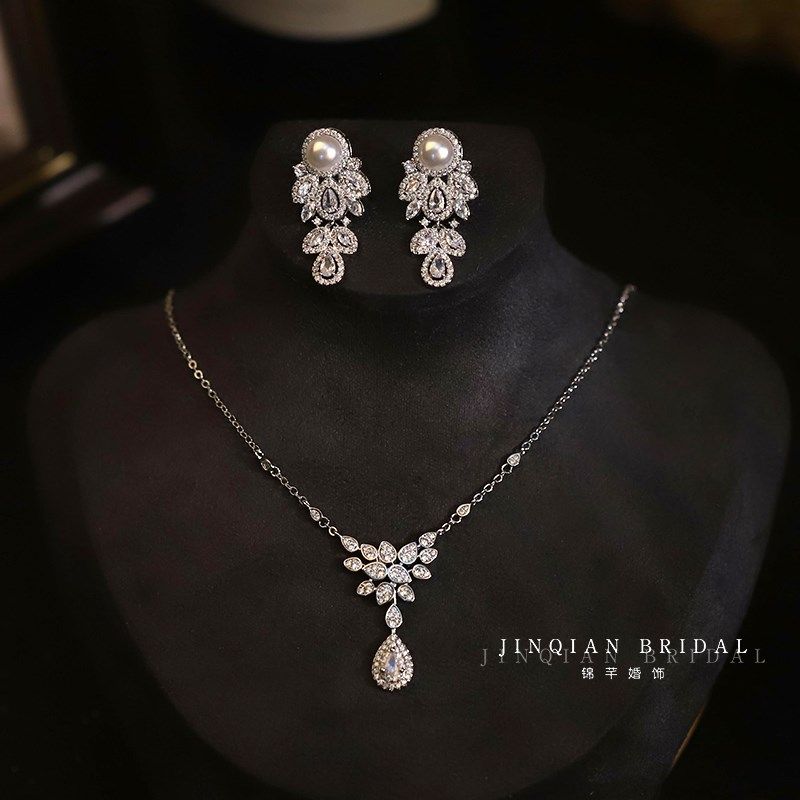 精美闪耀锆石项链耳环套装新娘饰品婚纱晚礼服配饰结婚宴会首饰品