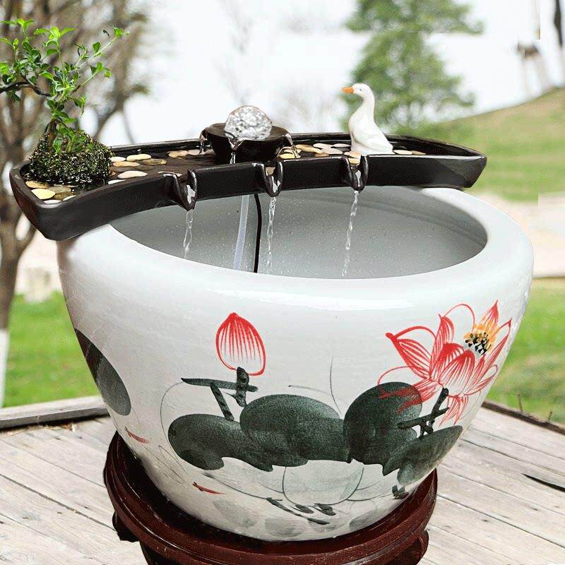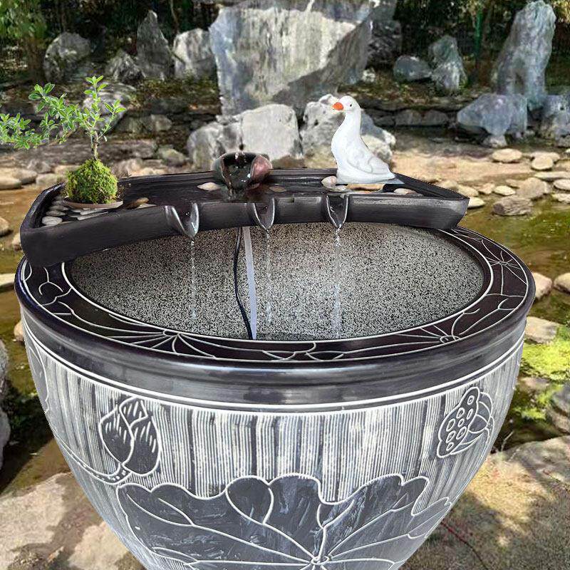 流水摆件循环水系统古法养鱼缸过滤造景搭配石槽瓦缸水池庭院配件