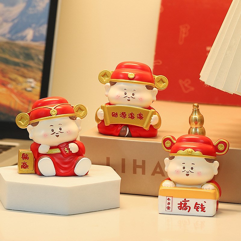 创意小财神爷办公室桌面工位电脑屏幕显示器车载发财装饰品小摆件