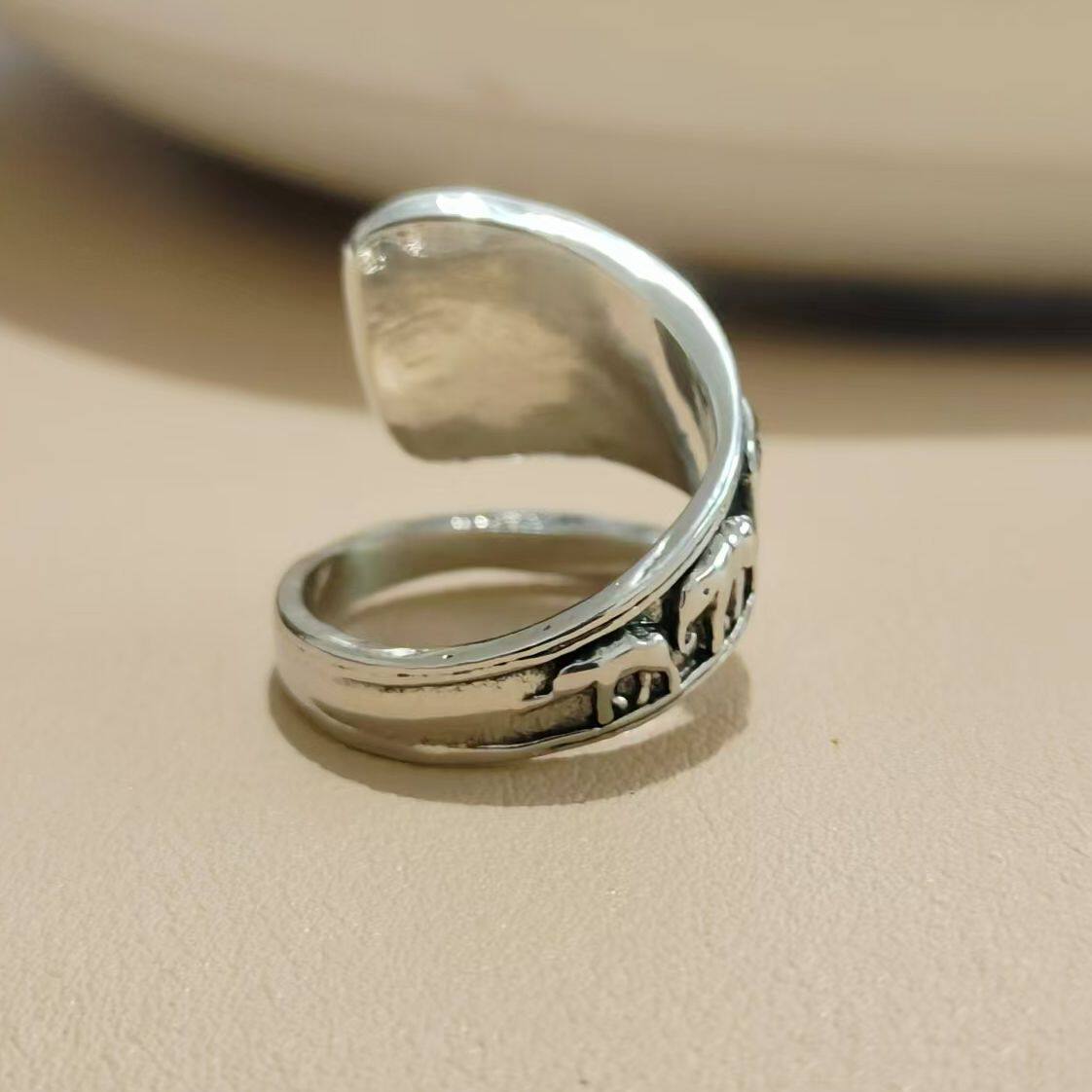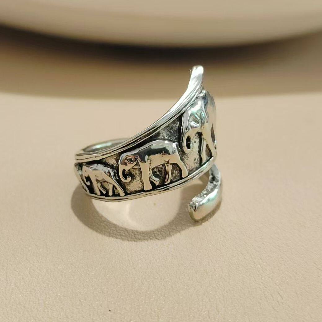 东南亚复古清迈大象藏银戒指女士个性开口饰品母子象素银指环礼物