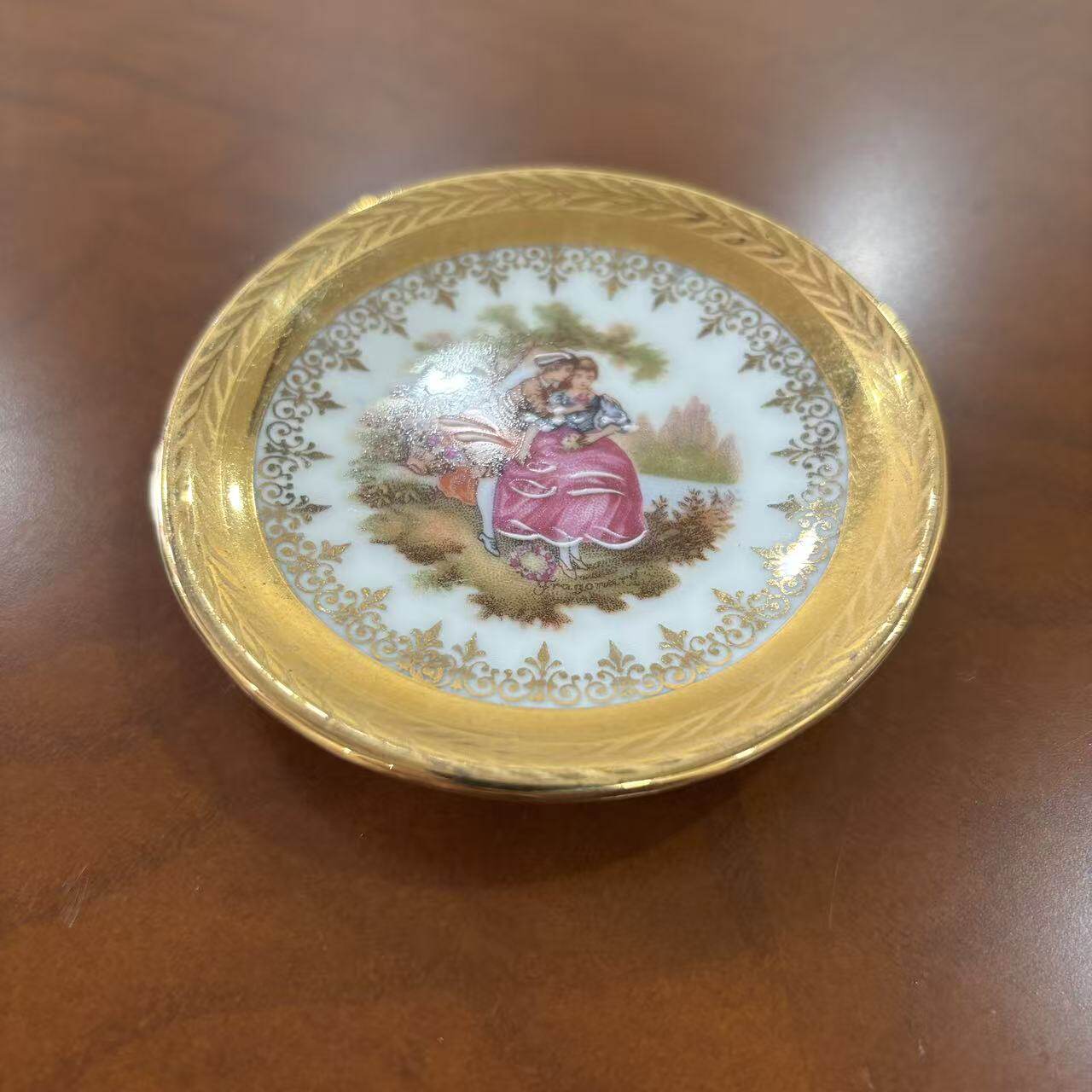 Limoges 法国利摩日 西洋人物装饰鎏金装饰小碟 摆件金色小瓷盘