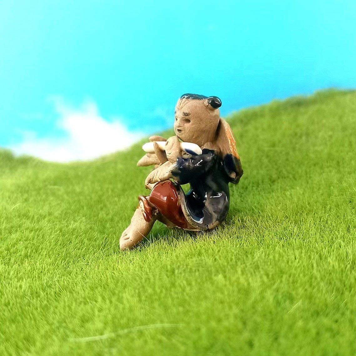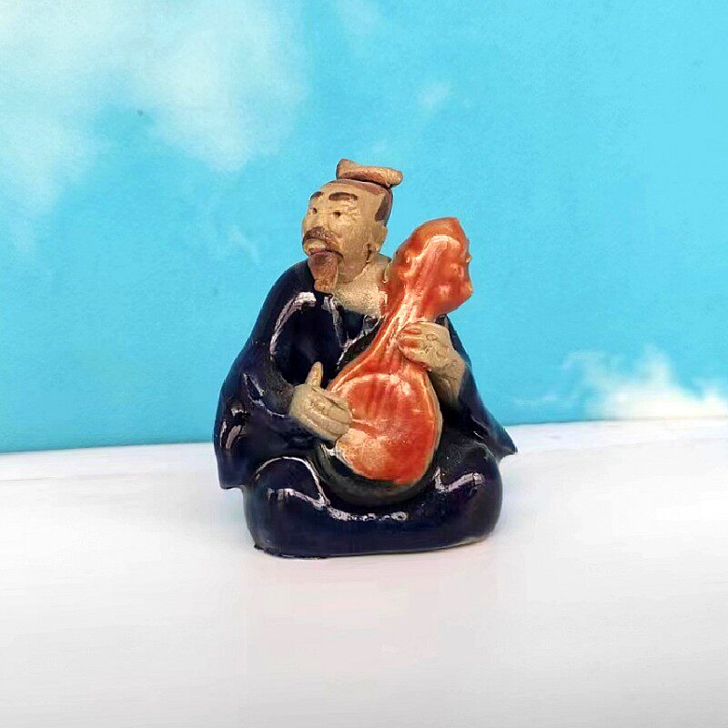 音乐人物摆件吹笛子古琴伯牙知音韩湘子鱼缸创意造景假山车内装饰