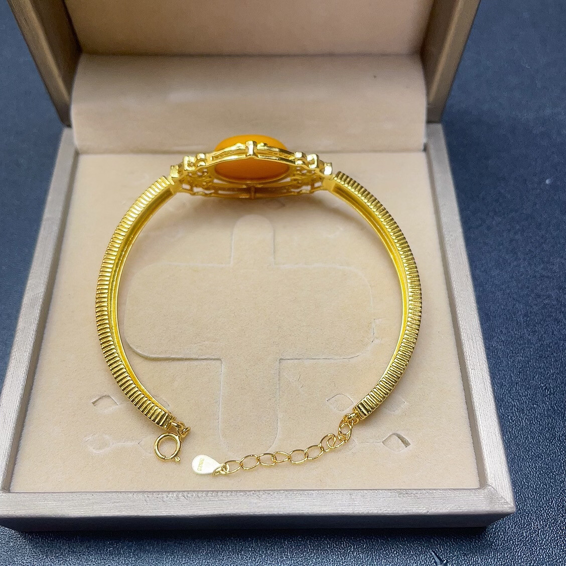天然鸡油黄老蜜蜡13X18MM蛋形s925银镶嵌简单手链活口可调节款琥