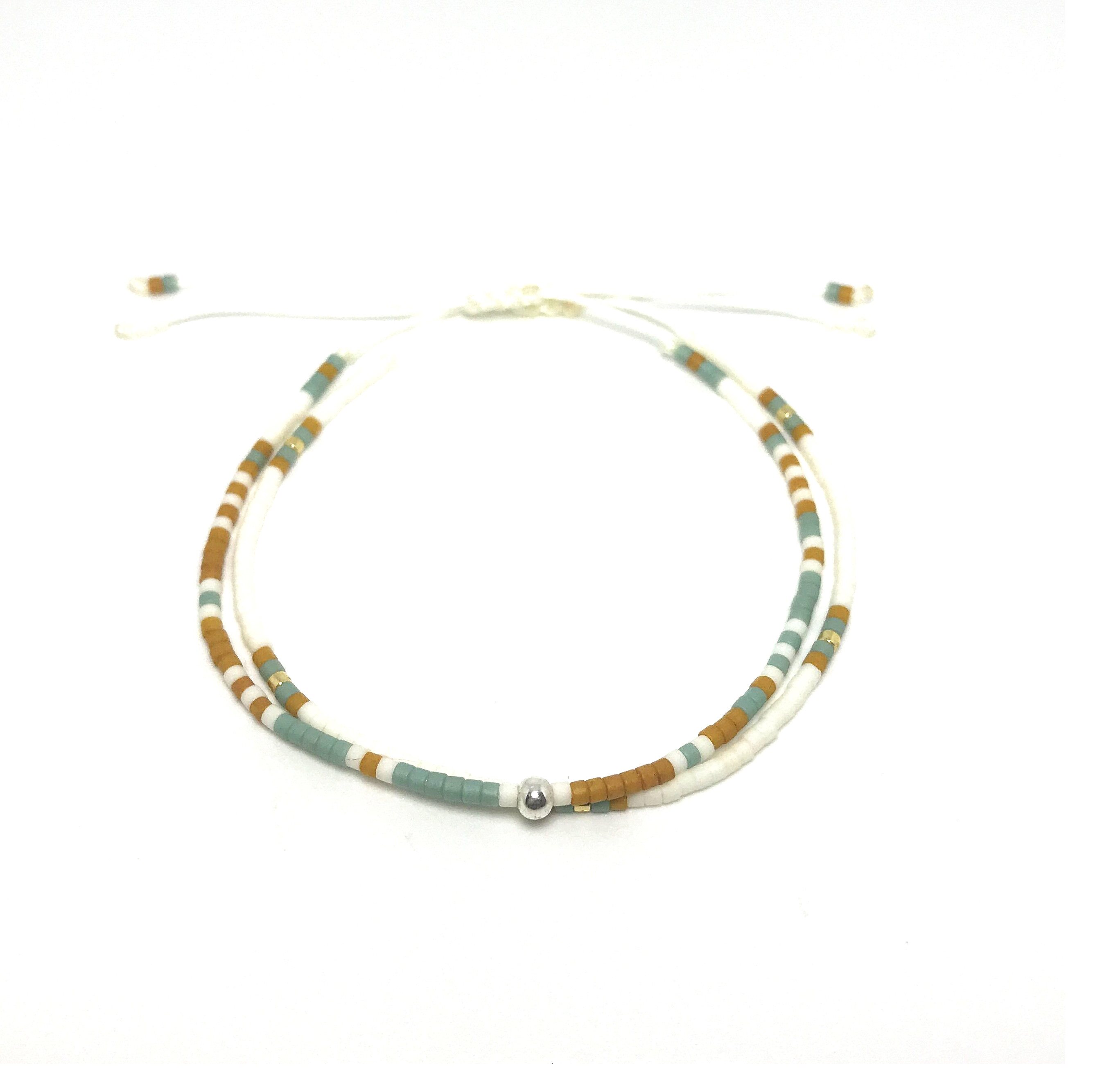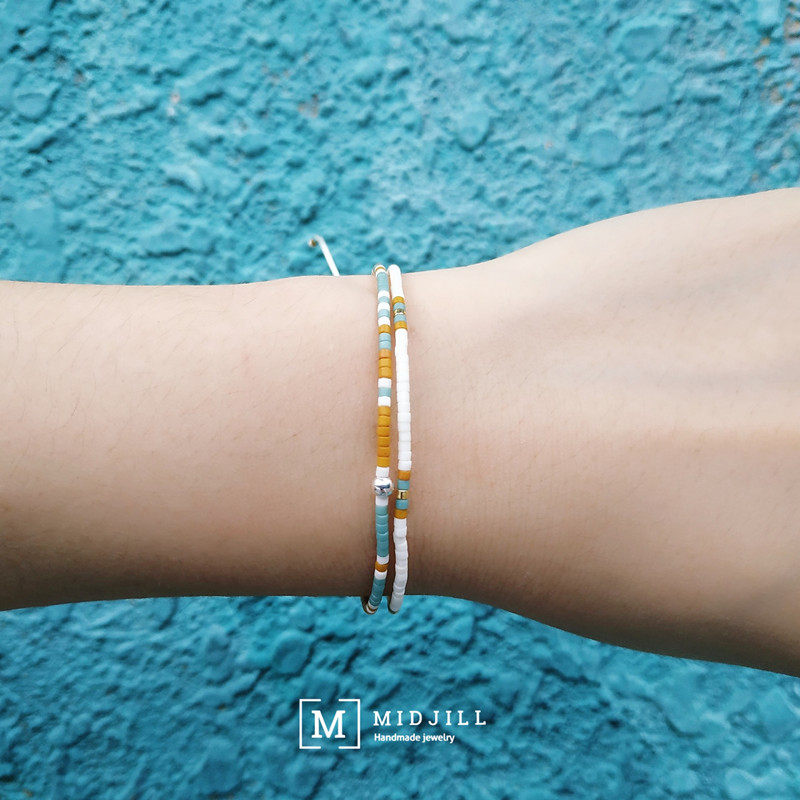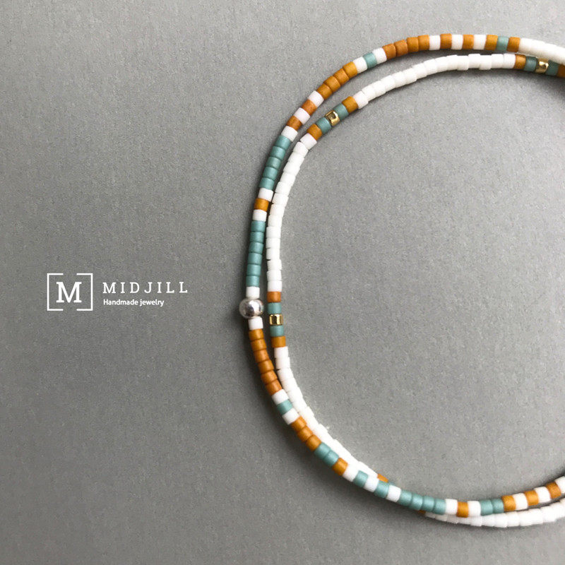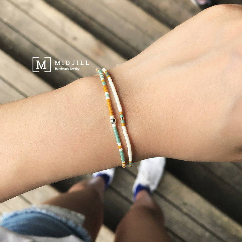 夏日的感觉沙滩阳光清新度假风磨砂色系手链 925银珠波西米亚手绳