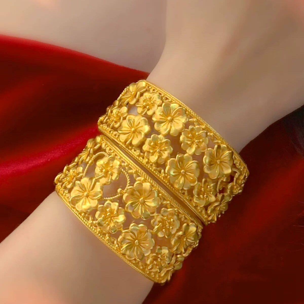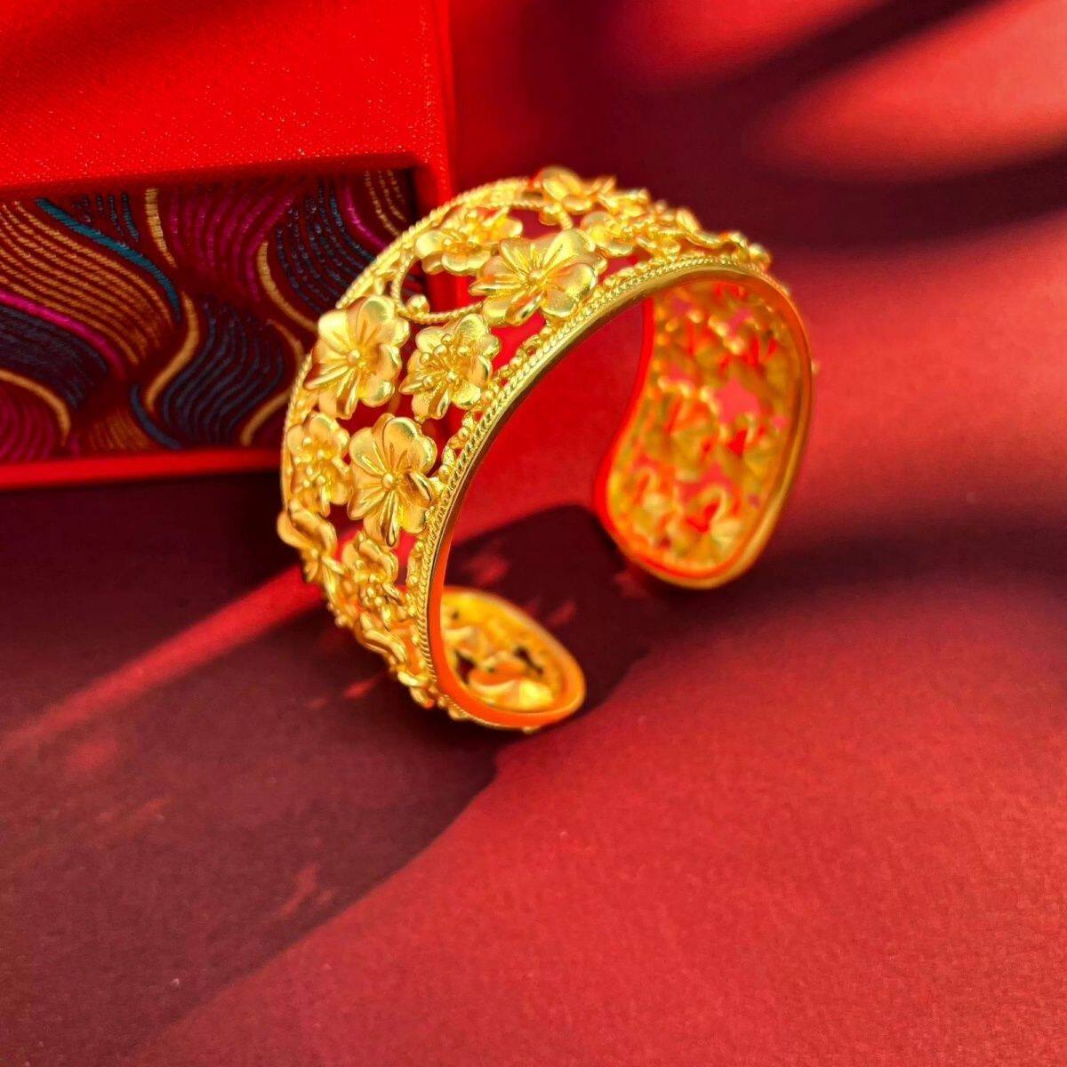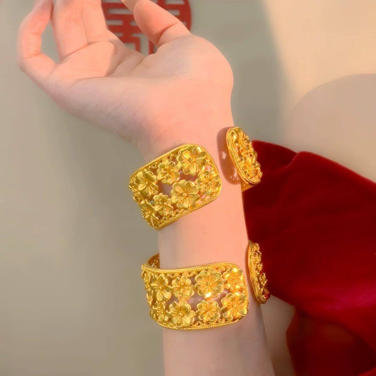 新款繁花似锦镀金色镂空花丝开口手镯结婚仿真三金拍照装饰品