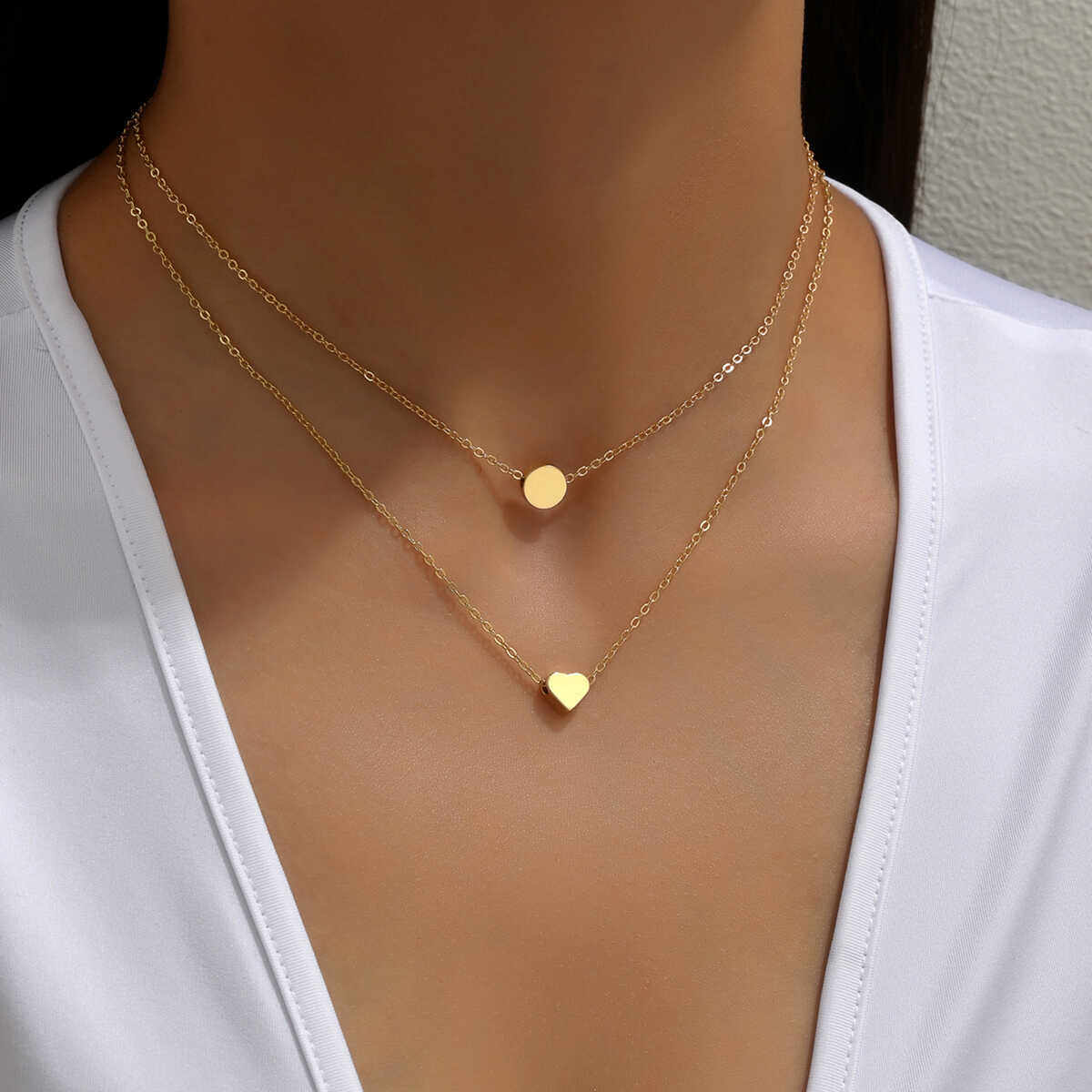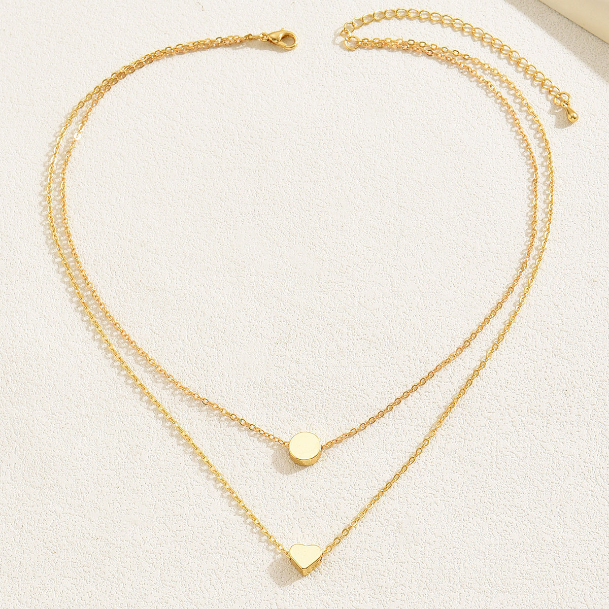 双层简约高级感项链金色爱心圆形吊坠颈链圆形女设计吊坠轻奢项链