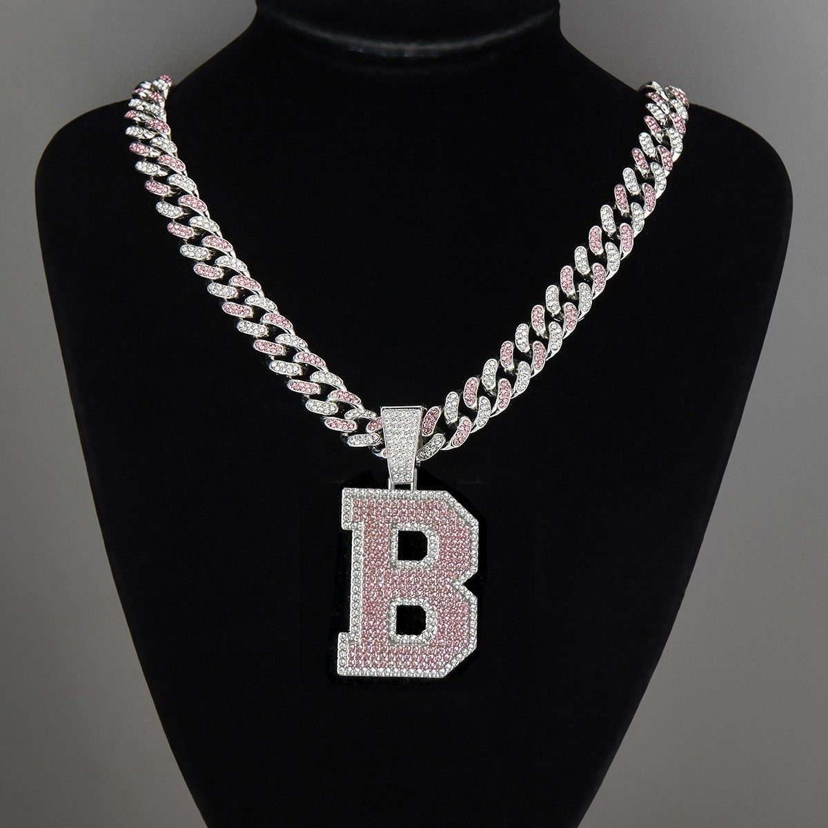 欧美高级感嘻哈个性A字母吊坠古巴链轻奢时尚百搭男女同款潮项链
