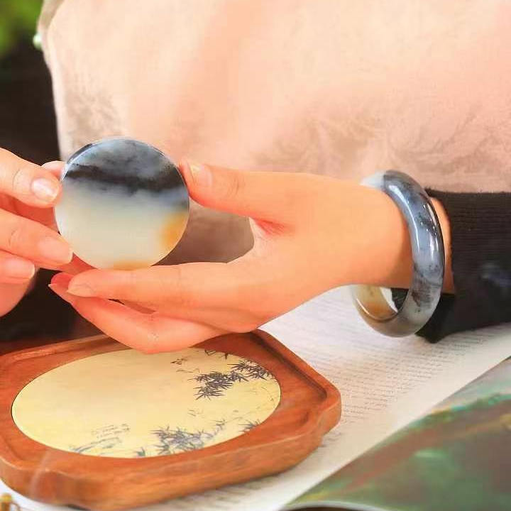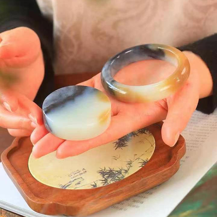 天然和田玉青花飘糖籽料手镯56圈口男女款玉石手镯玉镯子收藏礼品