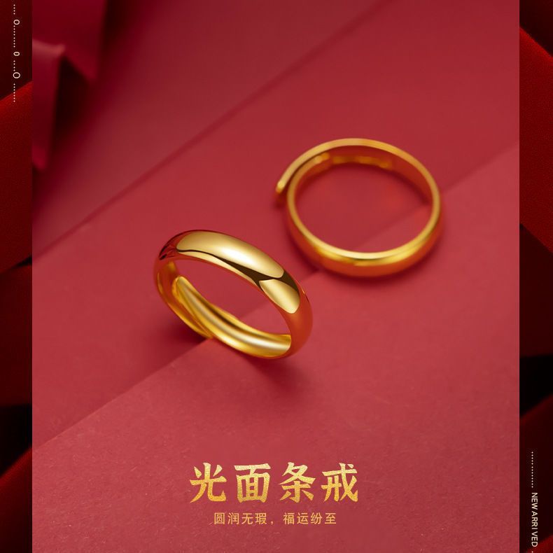 金店同款999纯金戒指24k黄金指环光面开口戒指金包银素圈活口实心